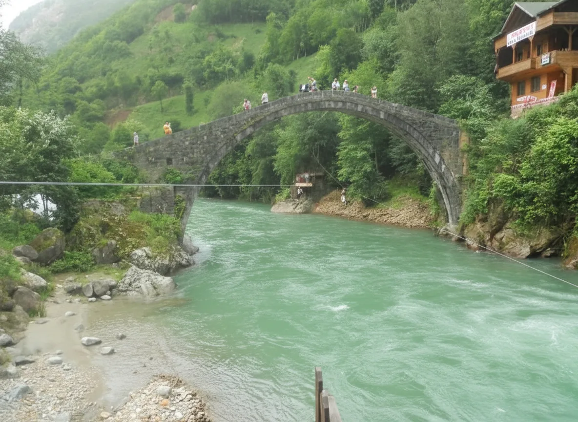 Travelers come to Firtina River for exciting rafting experiences, riverside