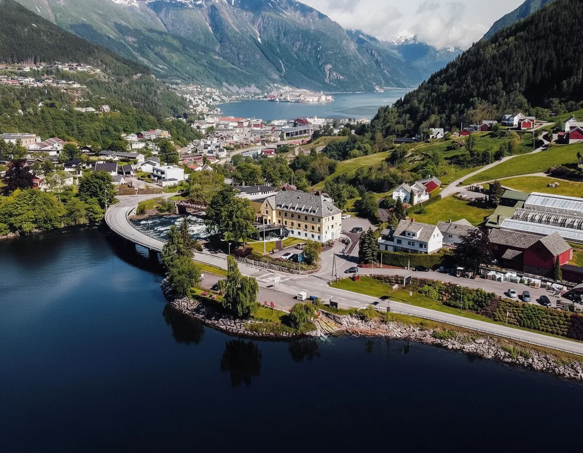 • 👣 Walk directly to the shoreline from the central Odda town area 🏘️