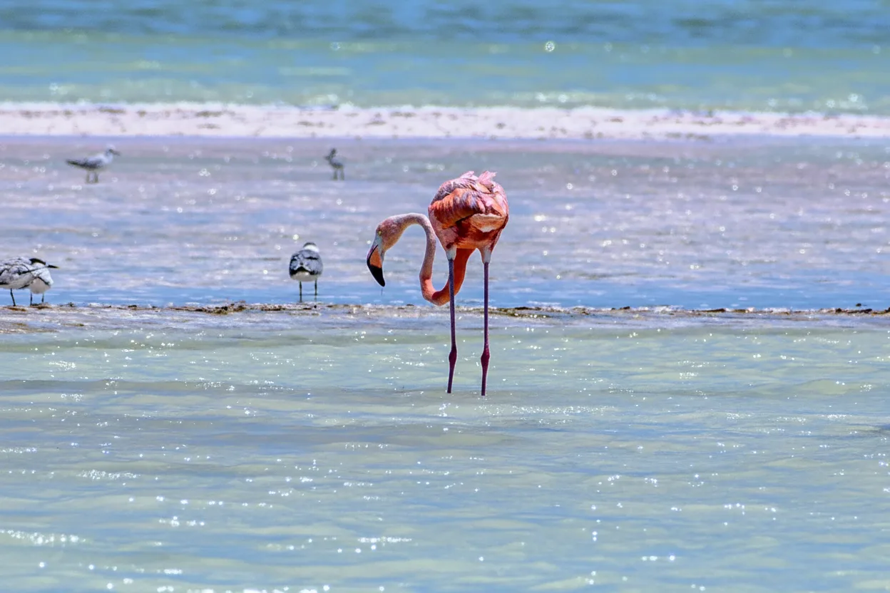 Flamingo viewing areas around Isla Holbox offer travelers a chance to observe flamingos in their natural coastal habitat during certain times of the year. These elegant birds are often seen in shallow lagoons and quiet shoreline zones where food is abundant. The calm environment of Holbox makes wildlife viewing a peaceful experience. Visitors are encouraged to observe from a distance, allowing flamingos and other bird species to move naturally without disturbance