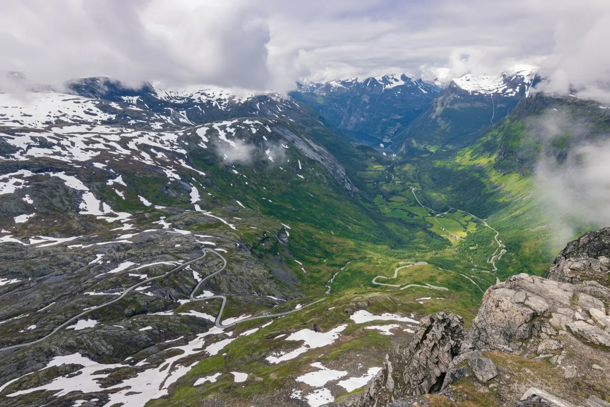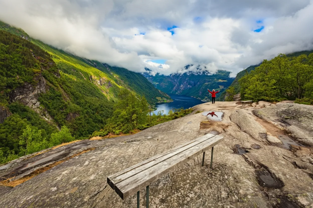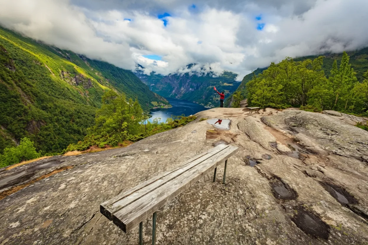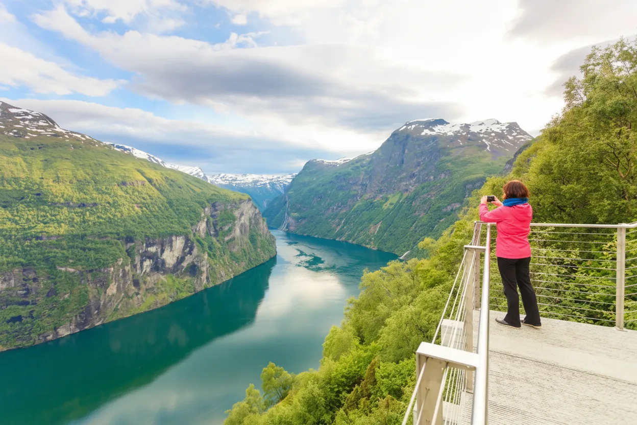 Flydalsjuvet Viewpoint is one of the most famous viewing platforms in Geiranger, offering a wide and dramatic perspective over the fjord and village below. The viewpoint is known for its elevated position and unobstructed fjord scenery. From here, visitors can see the winding fjord, steep mountain walls, and cruise ships entering the bay. The viewpoint is easily accessible and designed to provide safe and comfortable viewing. For travelers, Flydalsjuvet is a must-visit stop that delivers iconic Geirangerfjord views without physical effort.
