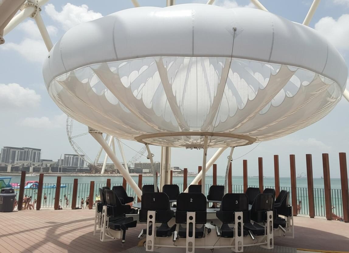 Flying Cup Dubai is one of the city’s most unique attractions, offering visitors the chance to enjoy snacks, coffee, and drinks while suspended 40 meters above the ground. Located at The Beach, JBR, it’s a thrilling yet relaxing experience that combines panoramic skyline views with an unforgettable dining twist. Perfect for couples, families, or anyone seeking a new way to see Dubai Marina.