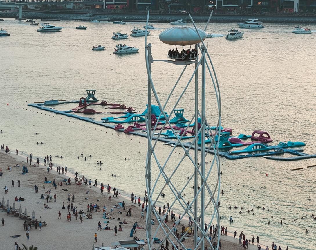 • Panoramic Views 👀🏙️: Take in 360° panoramic views of JBR Beach, Bluewaters Island, and Dubai Marina 🌊🤩