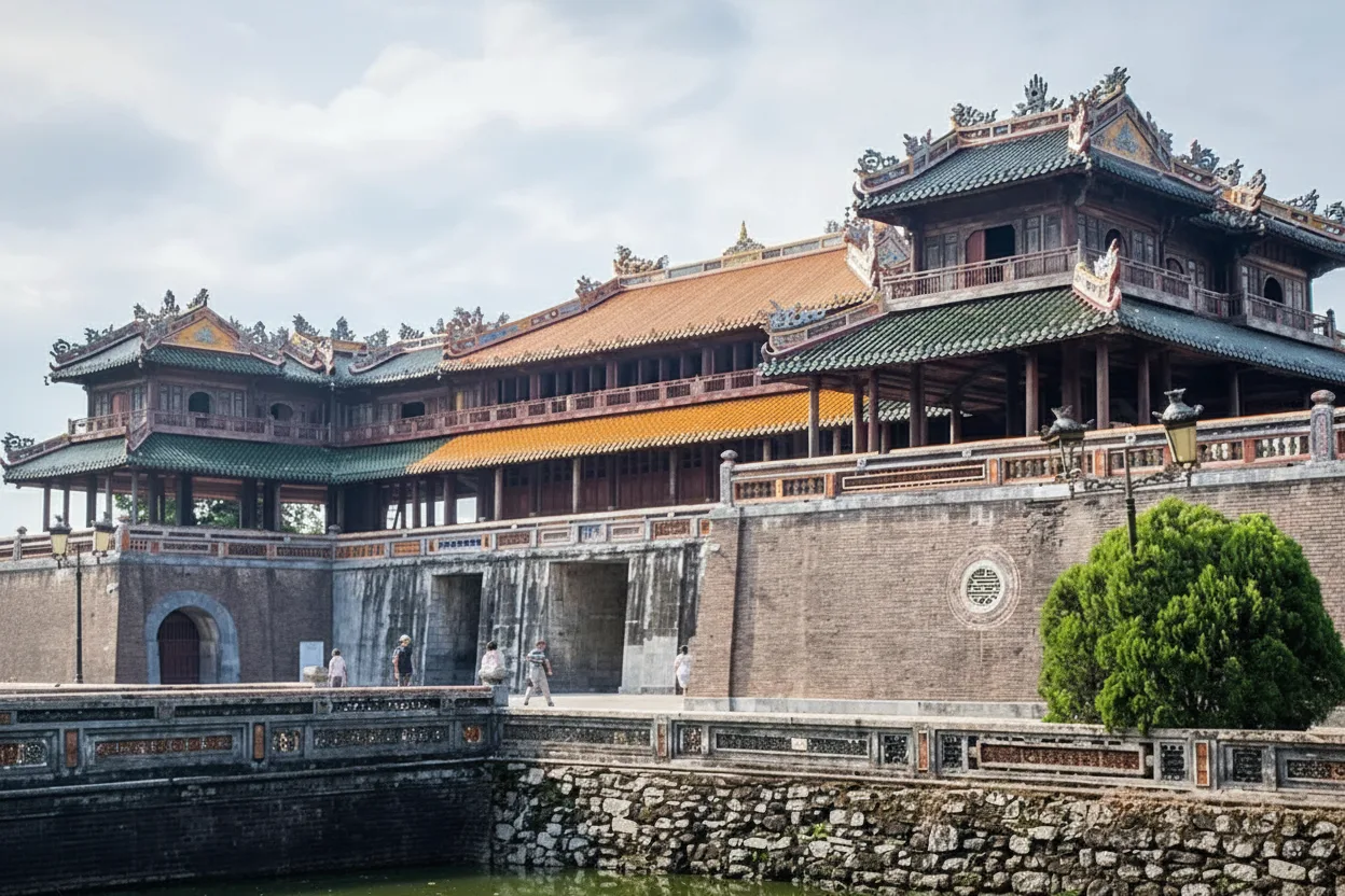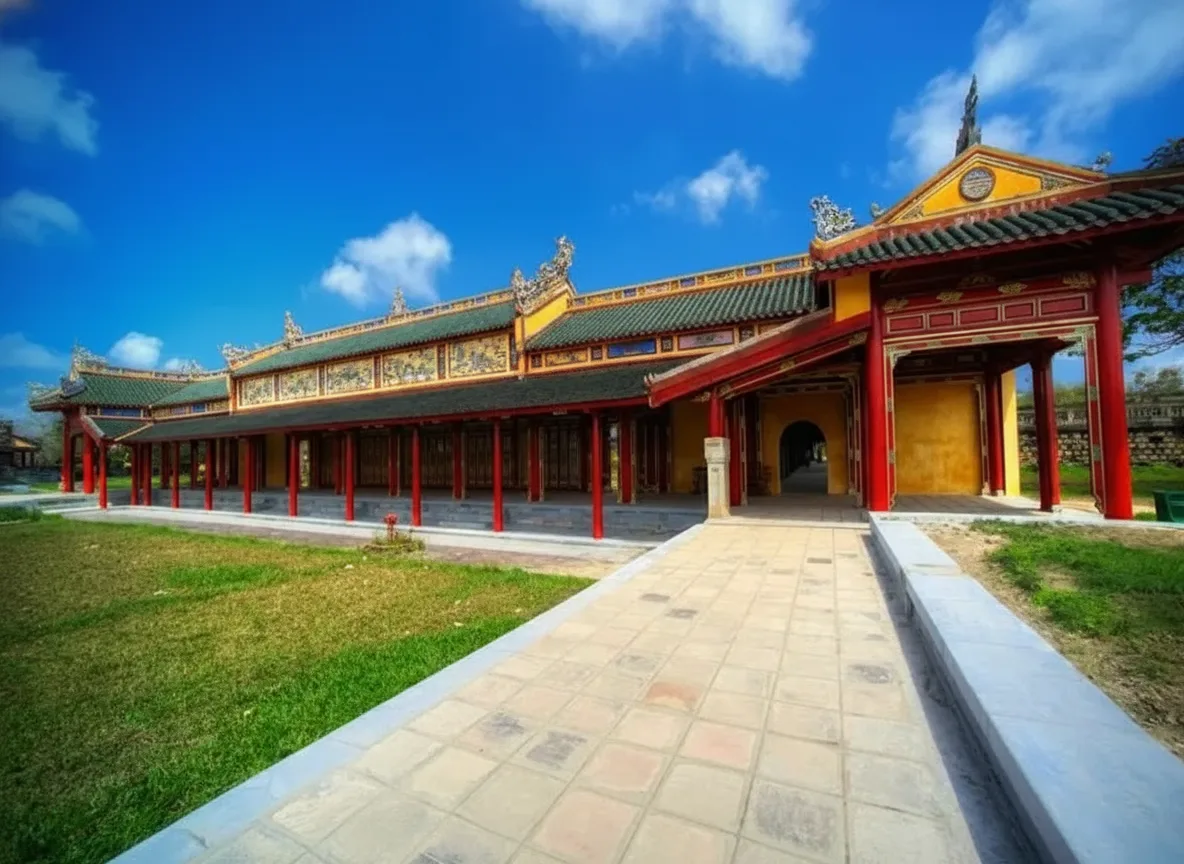 • 🚶 Walk from Thai Hoa Palace 🏯 within the Imperial Citadel complex to reach the Forbidden Purple City area 🌅
