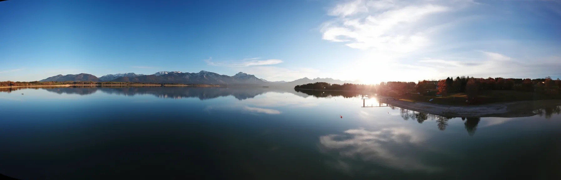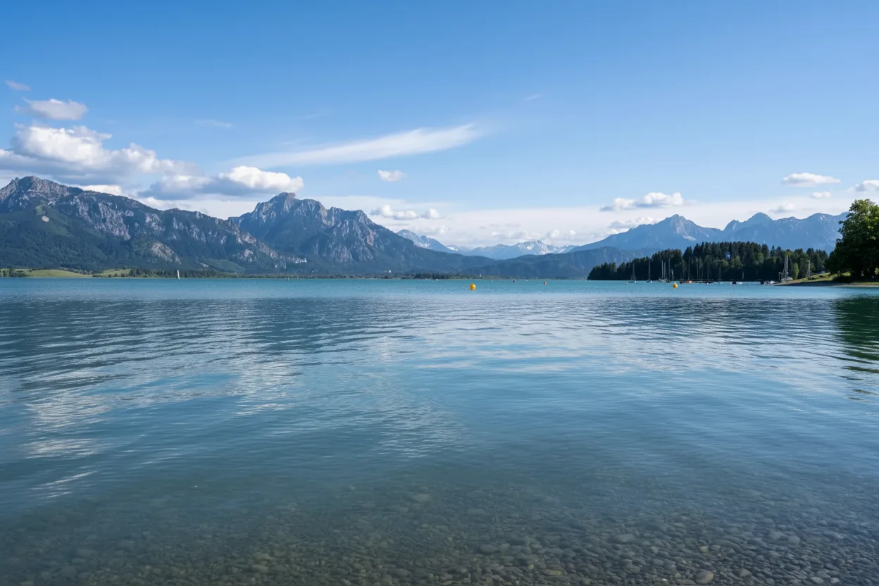 Forggensee Lake, located near Füssen in Bavaria, is one of the region’s largest and most