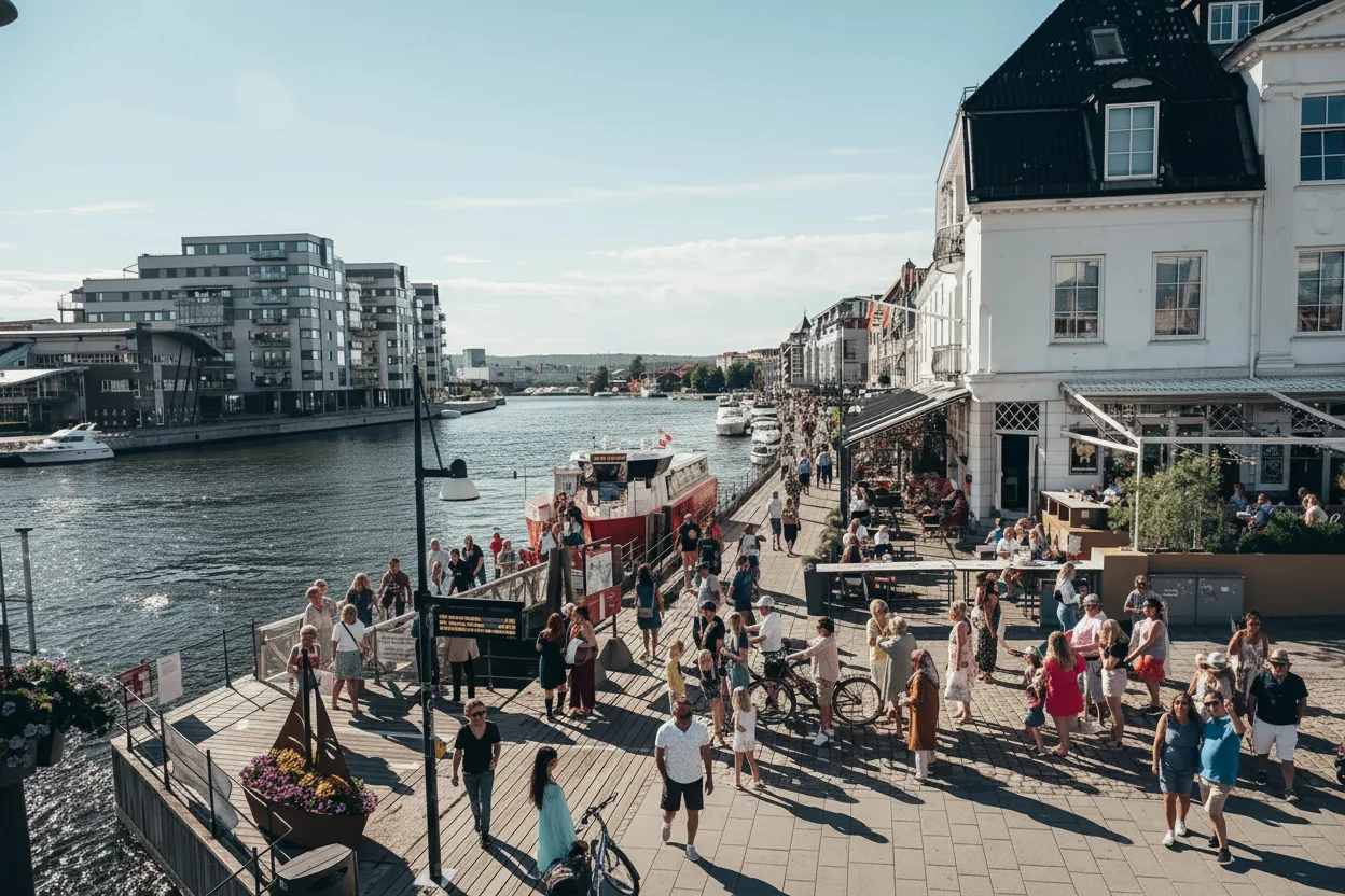 The free city ferry in Fredrikstad provides a simple and scenic way to cross the Glomma River between the city center and Old Town. Operating throughout the day, the ferry is used by both locals and visitors as part of daily travel and sightseeing. The short river crossing offers pleasant views of the waterfront, fortress walls, and boats along the river. It is not only a practical transport option but also a relaxing experience that connects key areas of the city. For travelers, the ferry crossing is an enjoyable way to move between attractions while experiencing Fredrikstad from the water.