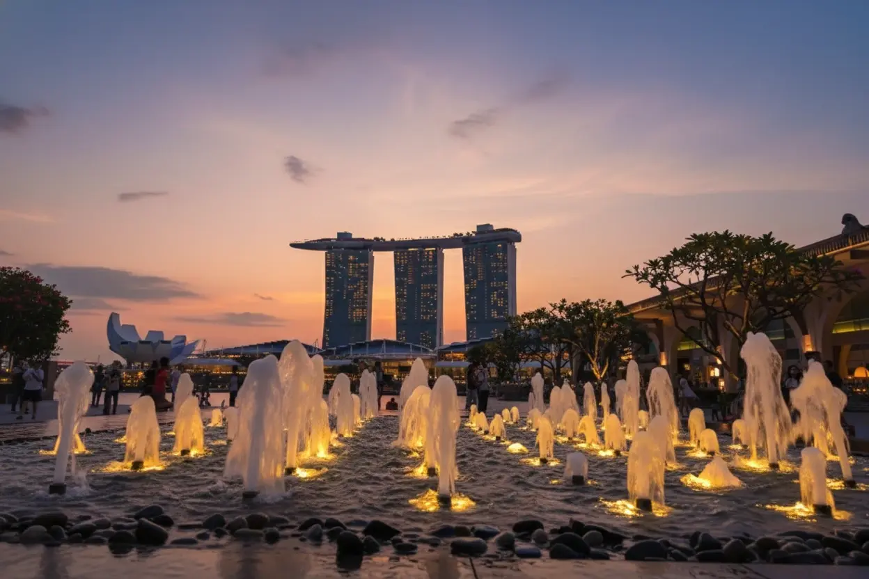 - 8:30 PM – Stroll 🚶♀️ to Merlion Park 🦁 for night photos 📸🌃✨👋