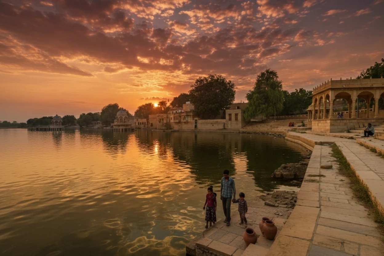 • 🕖 7:30 AM – Arrive at Gadisar 🌊 Lake to start your day 📍