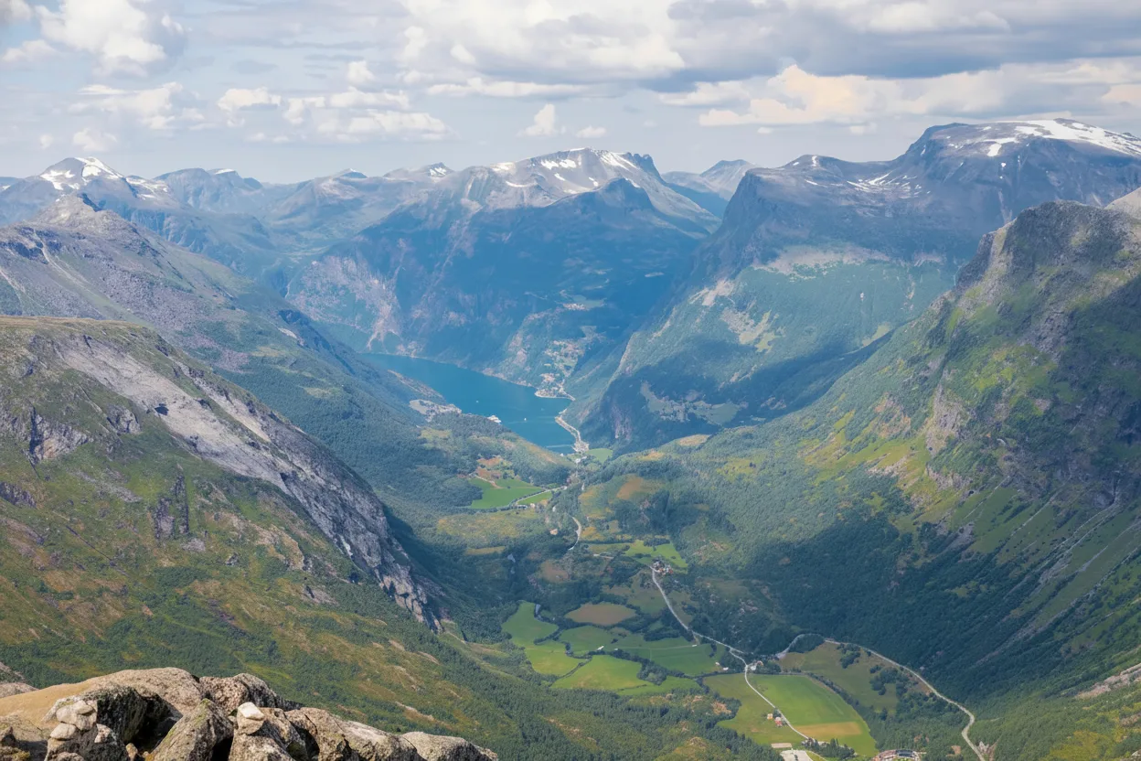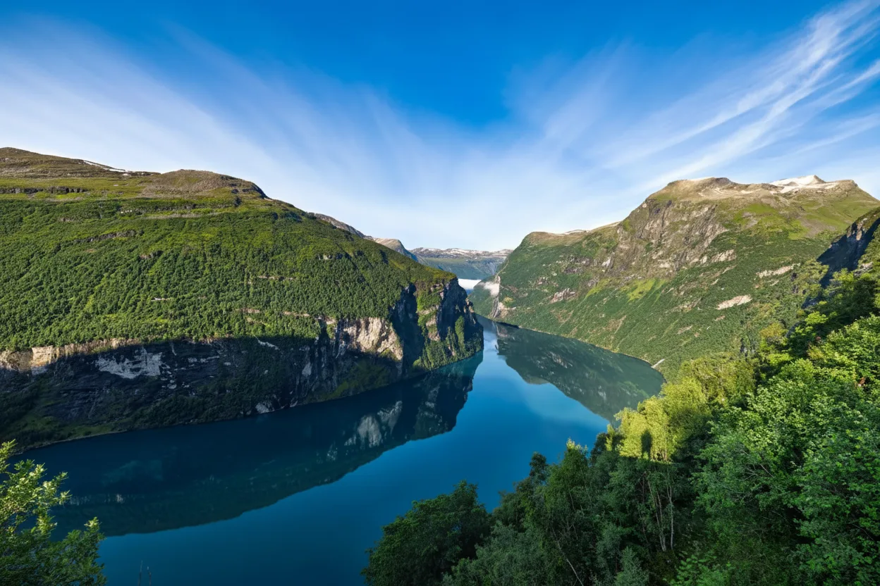 • 🏎️ 09:00 – Start the scenic 🛣️ drive toward the Geiranger area 📍