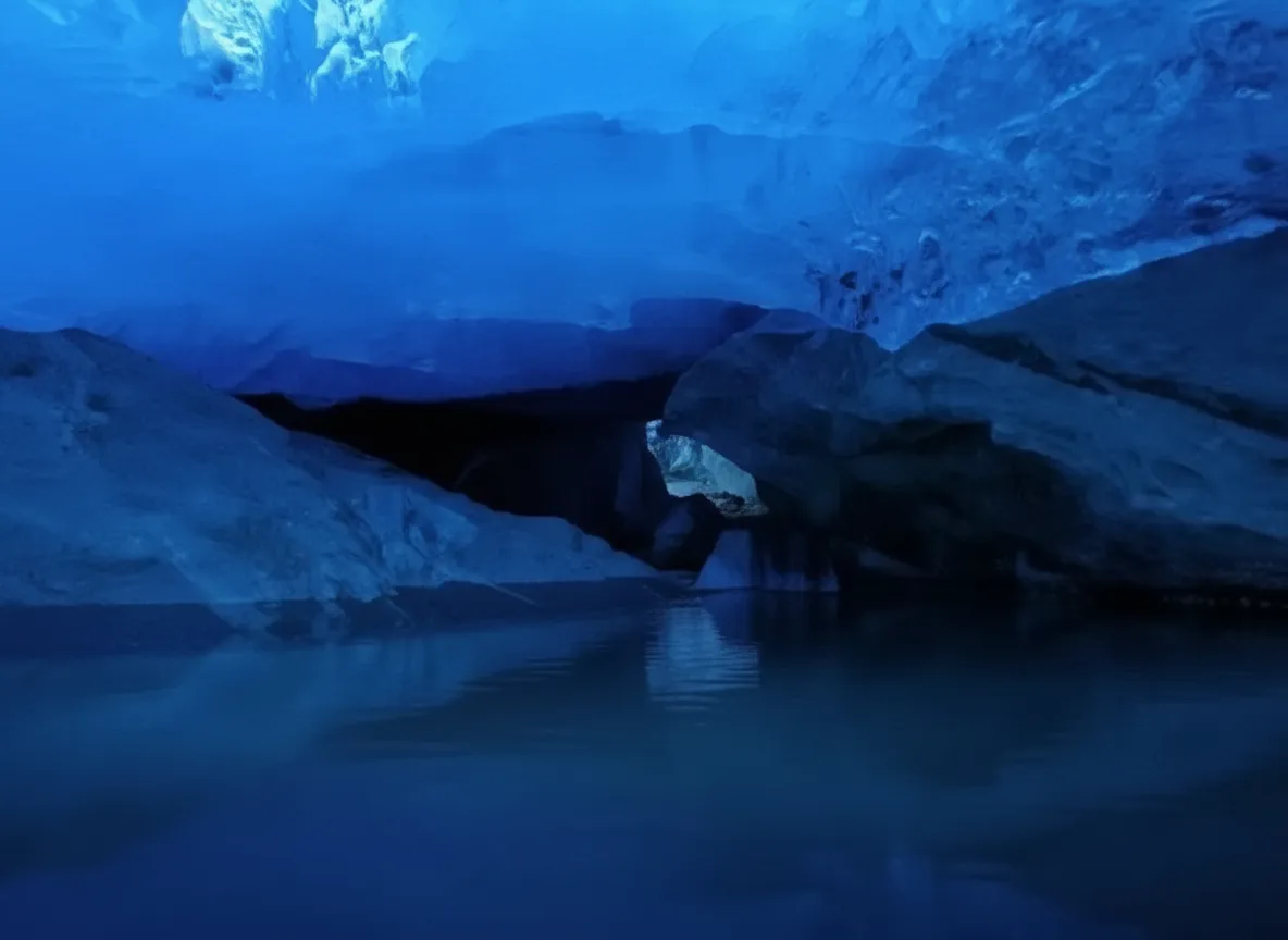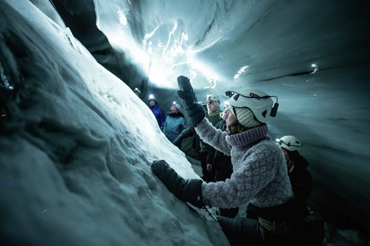 • ❄️ Wander through winding natural ice tunnels 🧊 to see the heart of the glacier 🏔️