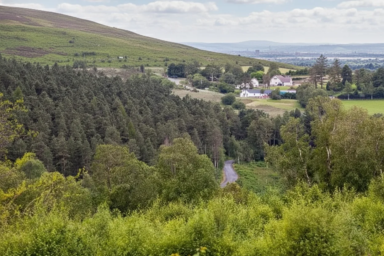 Glen of Imaal is a remote upland valley located in the southern part of the Wicklow Mountains National Park, County Wicklow, Ireland. Surrounded by high mountains, the valley is known for its open landscapes, quiet roads, and strong sense of isolation away from busy tourist routes. The area has a long military history and today offers peaceful countryside scenery, gentle walks, and wide views across the Wicklow uplands. It is ideal for travelers seeking solitude and natural beauty.