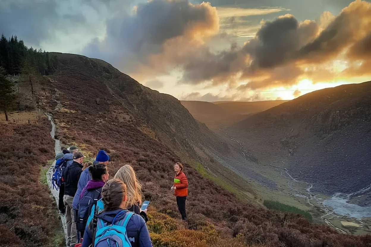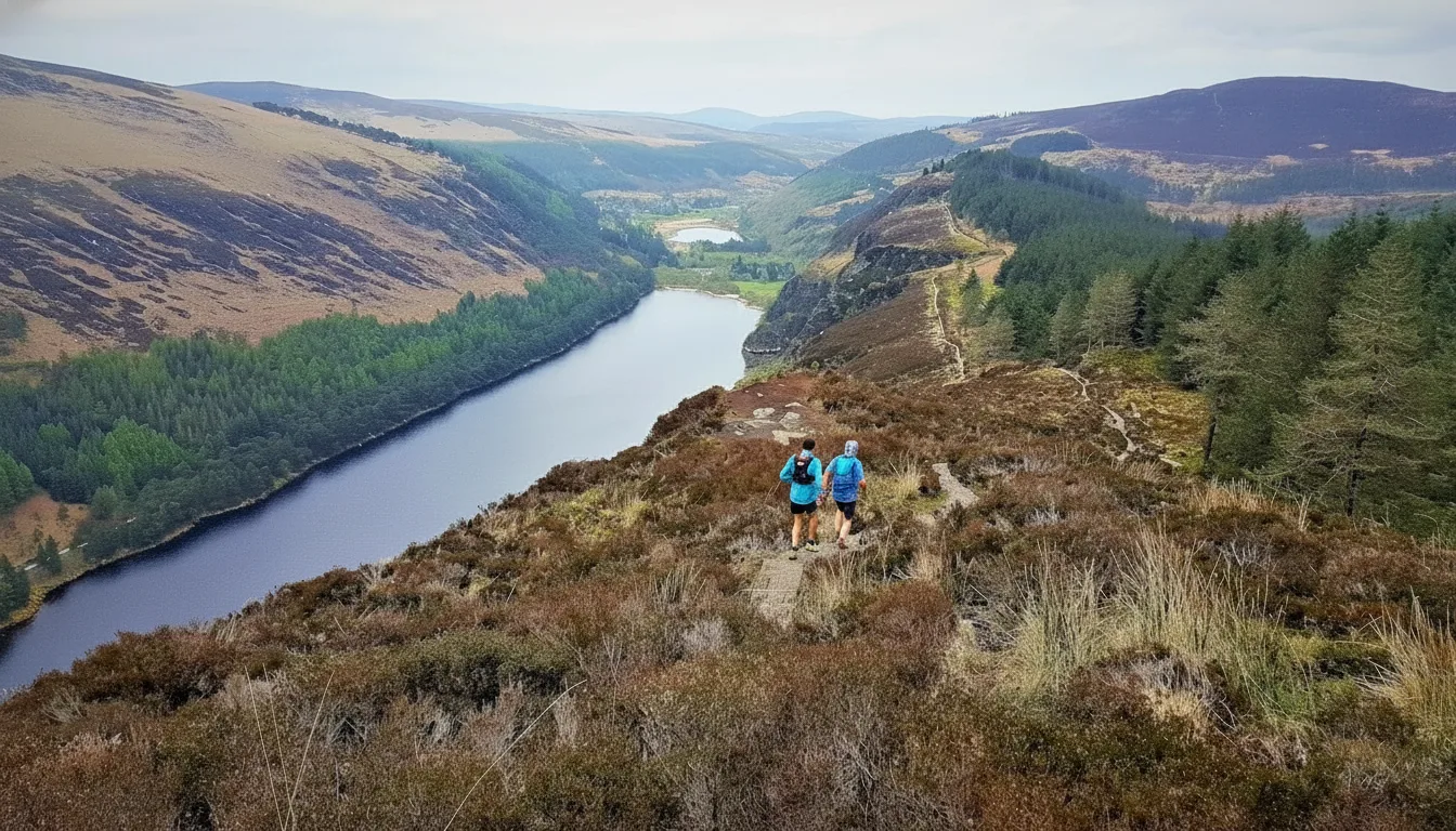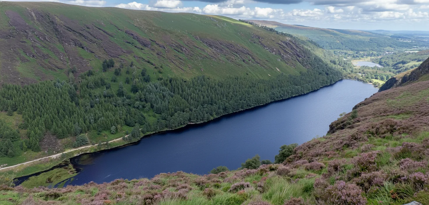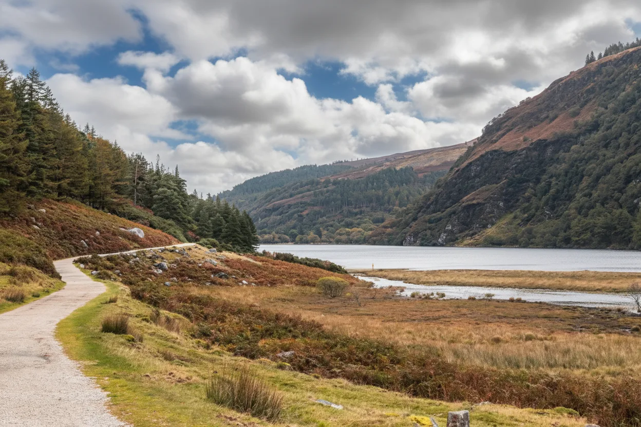Glendalough Upper Valley is one of the most scenic areas within Wicklow Mountains National Park, County Wicklow, Ireland. It is known for its upper lake, surrounding steep mountains, and well-marked walking routes that lead into dramatic landscapes. The area offers a quieter and more open feel compared to the lower valley. Visitors come to the Upper Valley to enjoy longer walks, mountain views, and peaceful lake scenery. The paths are suitable for walkers with moderate fitness and reward visitors with wide panoramic views.