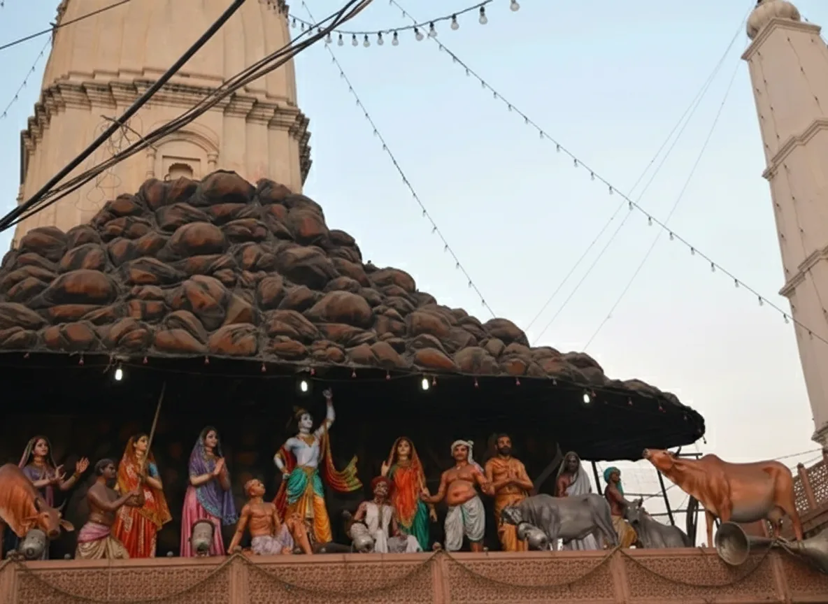 • 📜 Hear the legends of Krishna lifting the hill to shield the people of Braj from Indra 🛡️