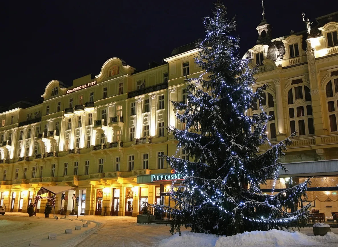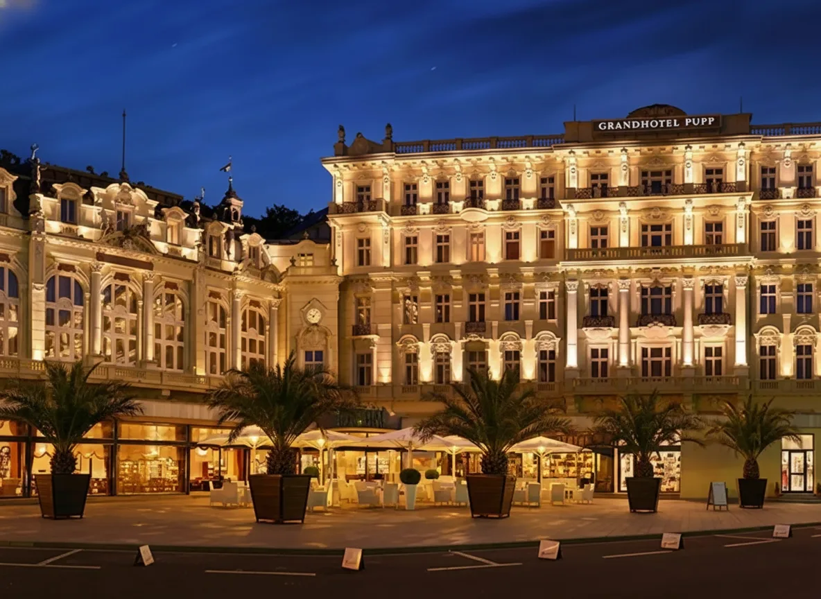 - 🕤 09:30 AM – Walk around Grandhotel Pupp 🏰 area to see the exterior 🏛️
