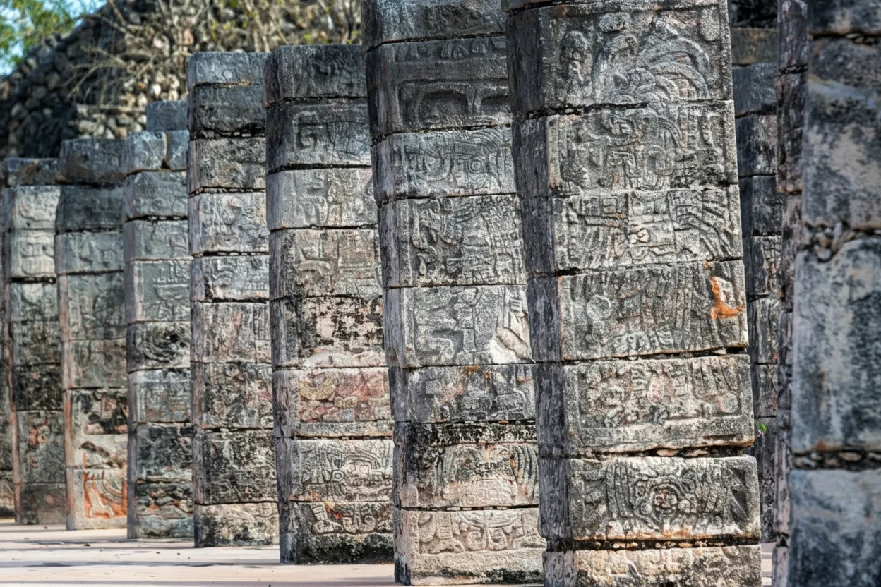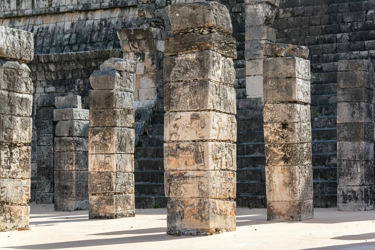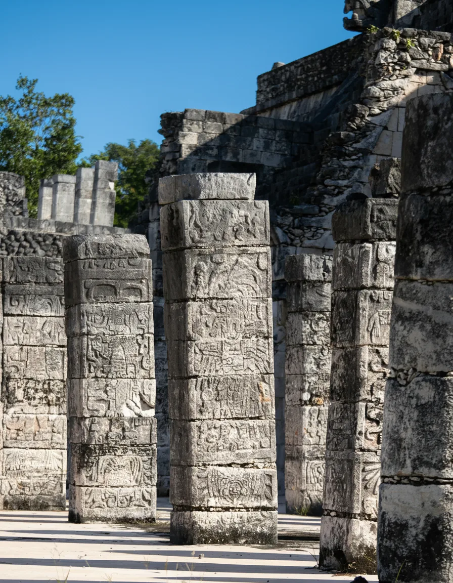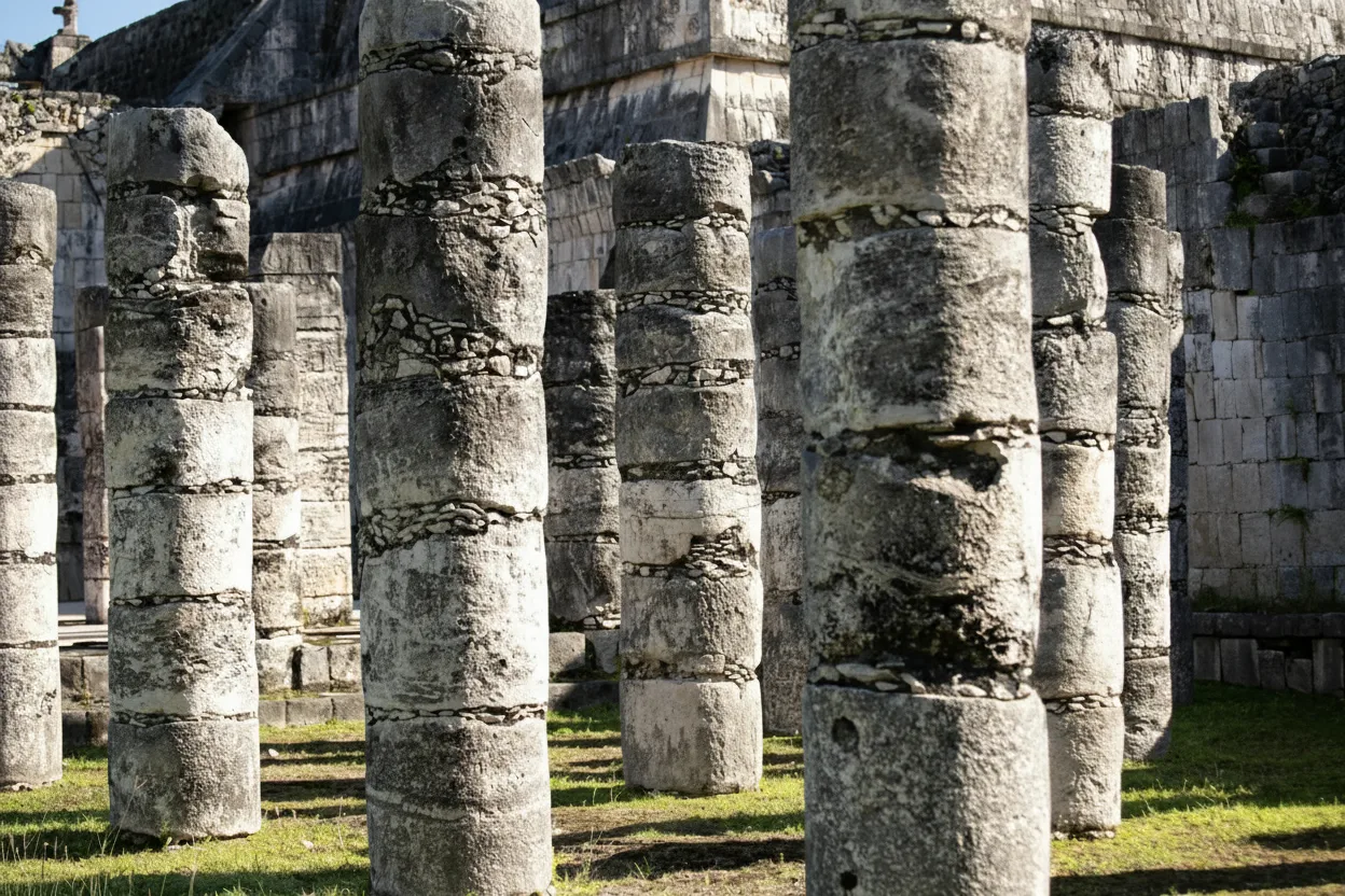 The Group of a Thousand Columns is a vast open area at Chichén Itzá made up of numerous stone columns that once supported large roofed structures. This area is believed to have been used for public gatherings, ceremonies, and processions during the height of the Maya civilization. Walking among the columns gives visitors a sense of the scale and organization of the ancient city. The layout reflects both Maya and Toltec architectural influence, highlighting the importance of this space in social and ceremonial life.