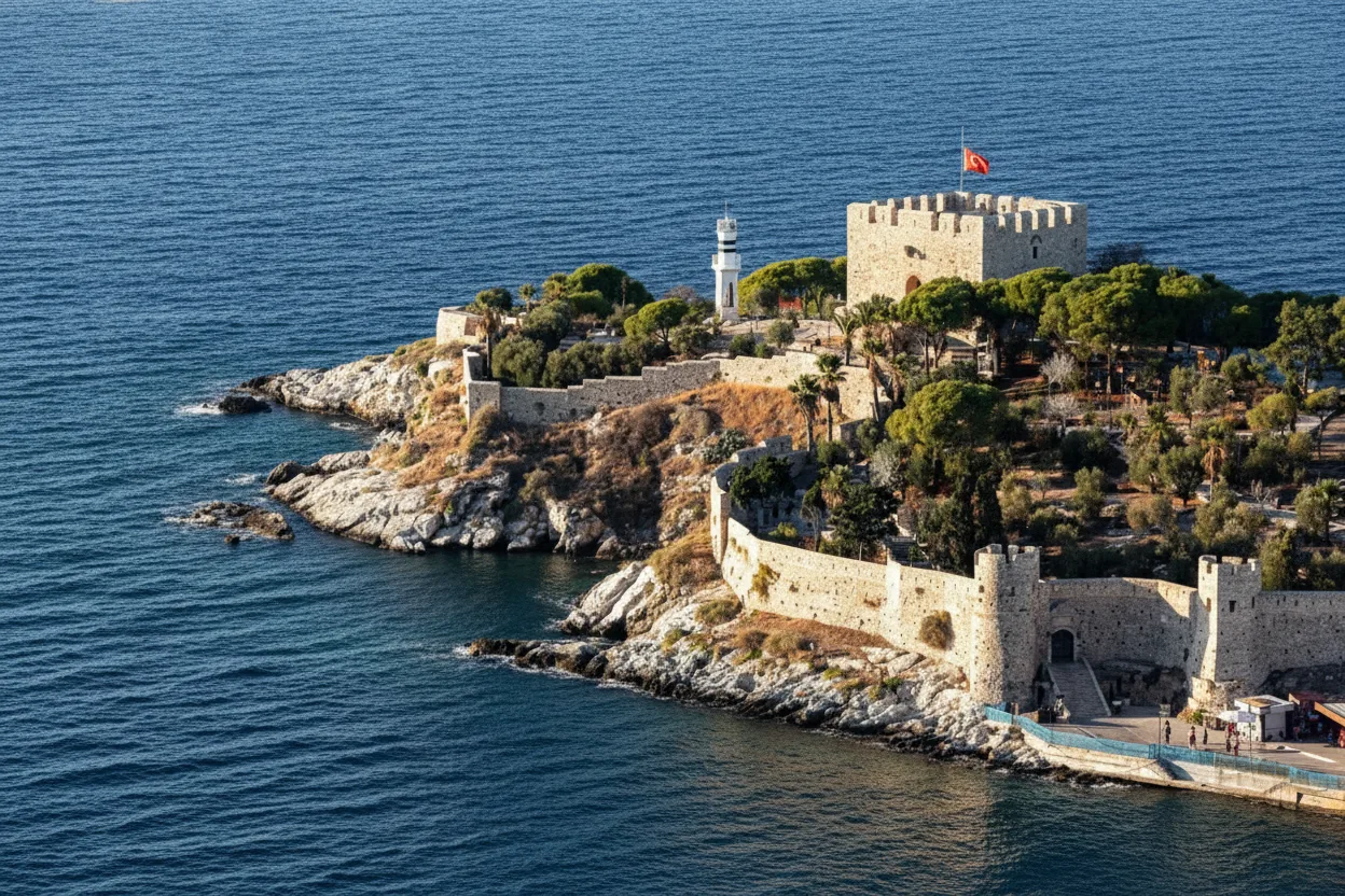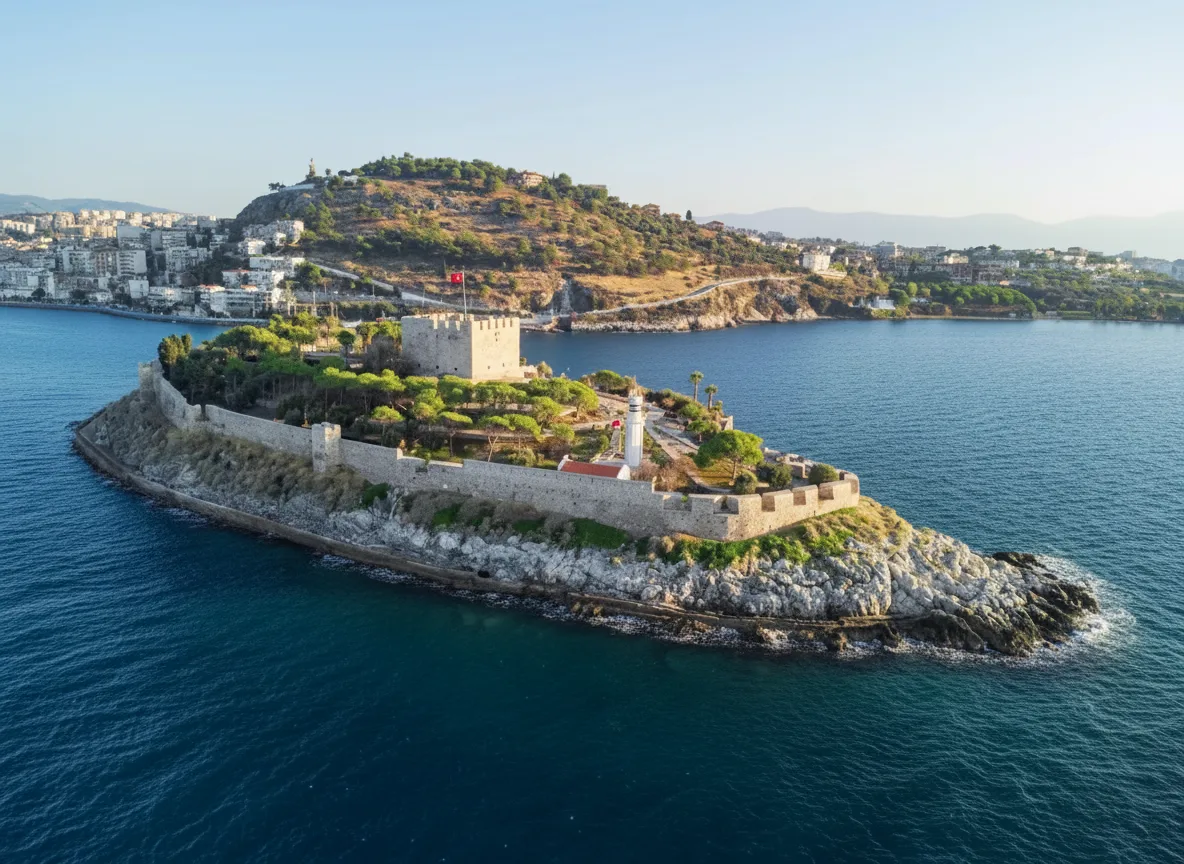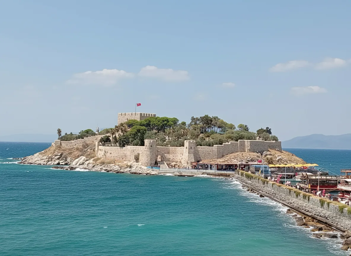 Güvercinada Castle is a historic seaside fortress located on Pigeon Island at the entrance of Kusadasi Harbor. Built and reinforced during Byzantine, Genoese, and Ottoman periods, the castle played an important role in protecting the coastline. Today, it offers scenic walking paths and beautiful views of the sea and town.