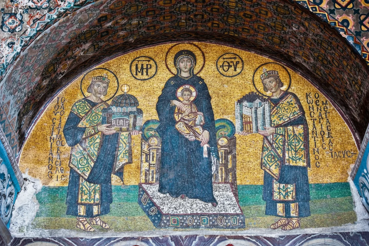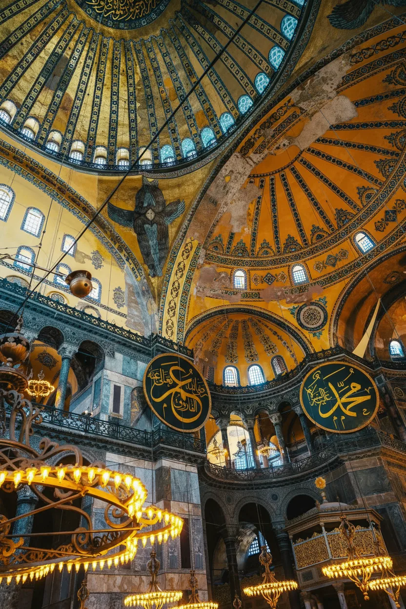 • 📐 Explore the intricate Byzantine and grand Ottoman architectural elements 🏰 🛡️