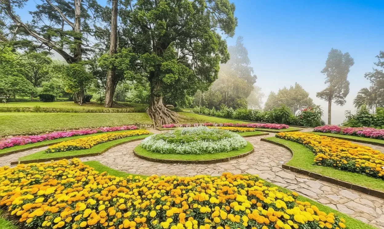 Hakgala Botanical Gardens, just 10 km south of Nuwara Eliya, is one of Sri Lanka’s most beautiful mountain gardens. Spread across rolling hills, it features roses, orchids, ferns, and exotic trees — all blooming in the cool misty air.