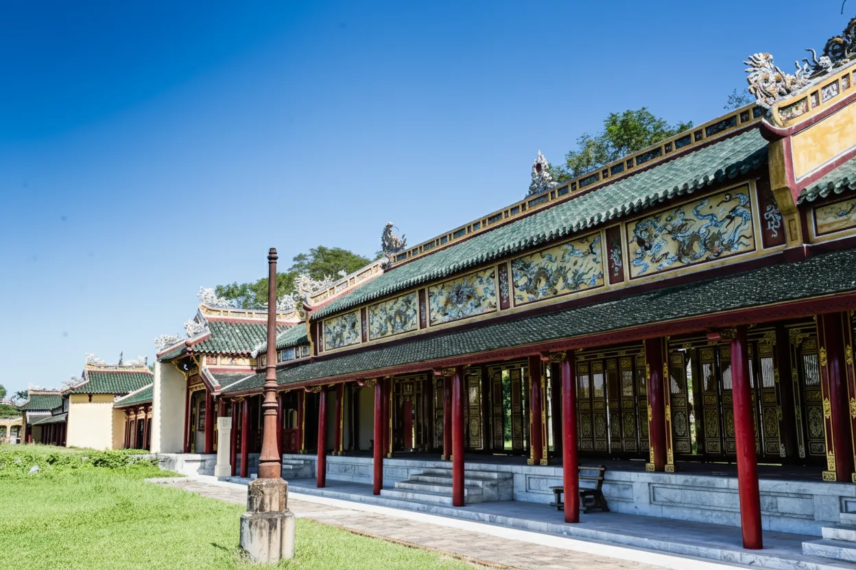 The Halls of Mandarins were important administrative buildings within the Imperial Citadel of Hue, where court officials carried out governance duties and formal meetings during the Nguyen Dynasty. These halls played a key role in managing state affairs and royal administration. For travelers, the Halls of Mandarins provide insight into the working side of imperial life. The structures and remaining decorative elements reflect the hierarchy, discipline, and formality of the Vietnamese royal court.