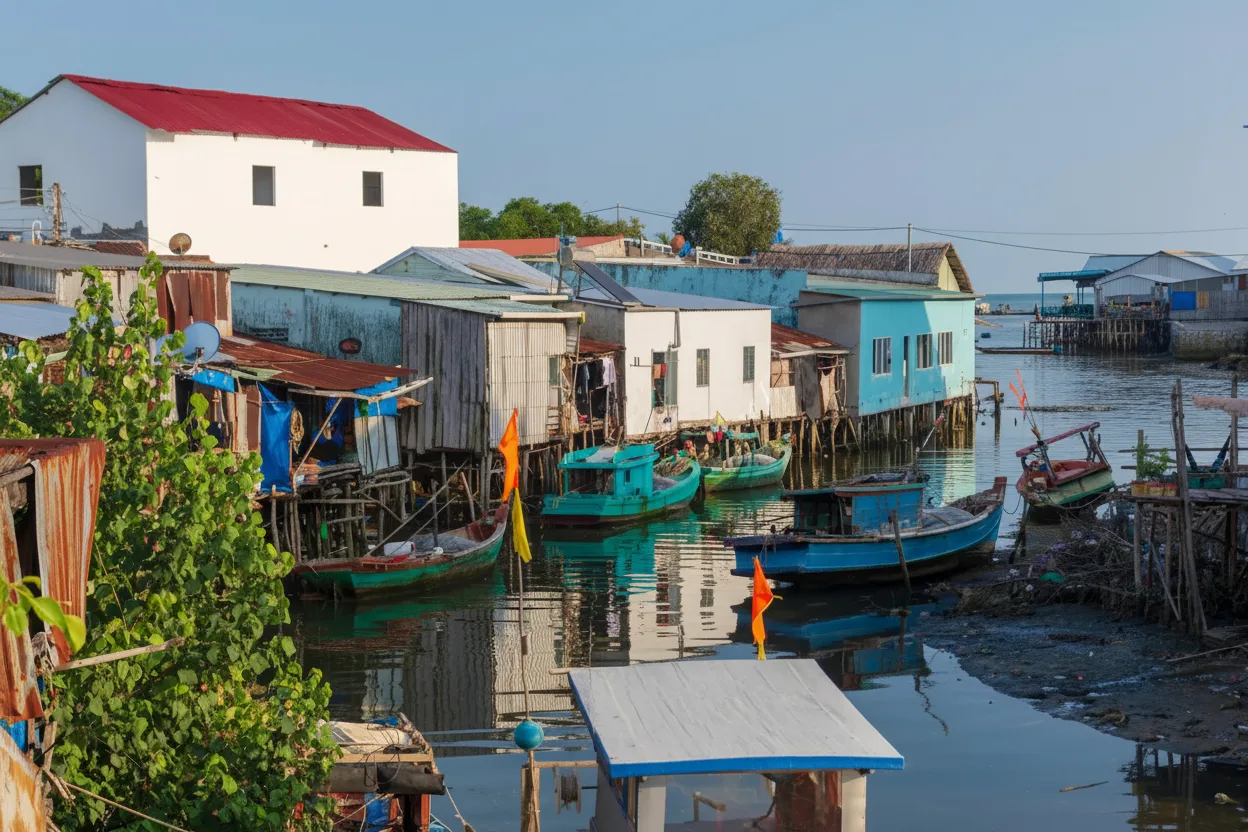 on Phú Quốc Island, Vietnam. Known for its simple wooden houses, fishing