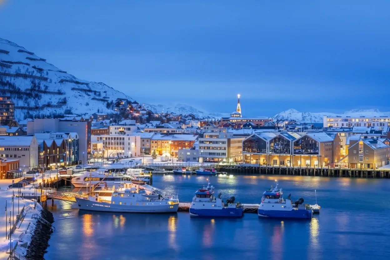Hammerfest Harbor is the heart of the town, combining daily coastal life with open views of the Arctic Sea. The harbor area is active yet relaxed, where fishing boats, ferries, and local vessels arrive throughout the day. Walking along the harbor allows visitors to experience Hammerfest’s connection to the sea. The area is well suited for casual walks, photography, and short breaks while exploring the town. For travelers visiting Hammerfest, the harbor offers an easy introduction to Arctic coastal culture and scenery.