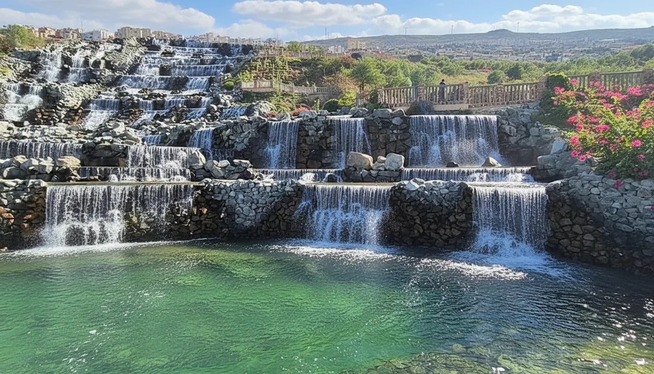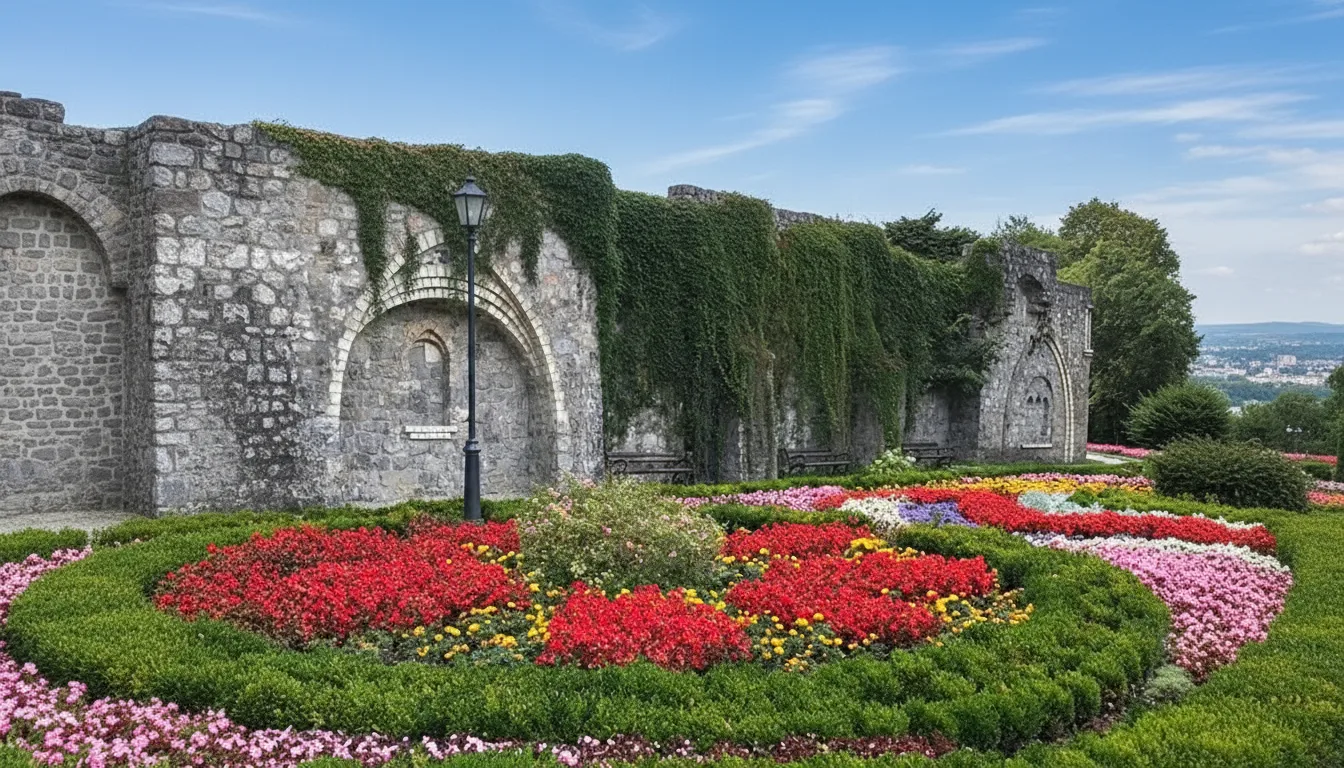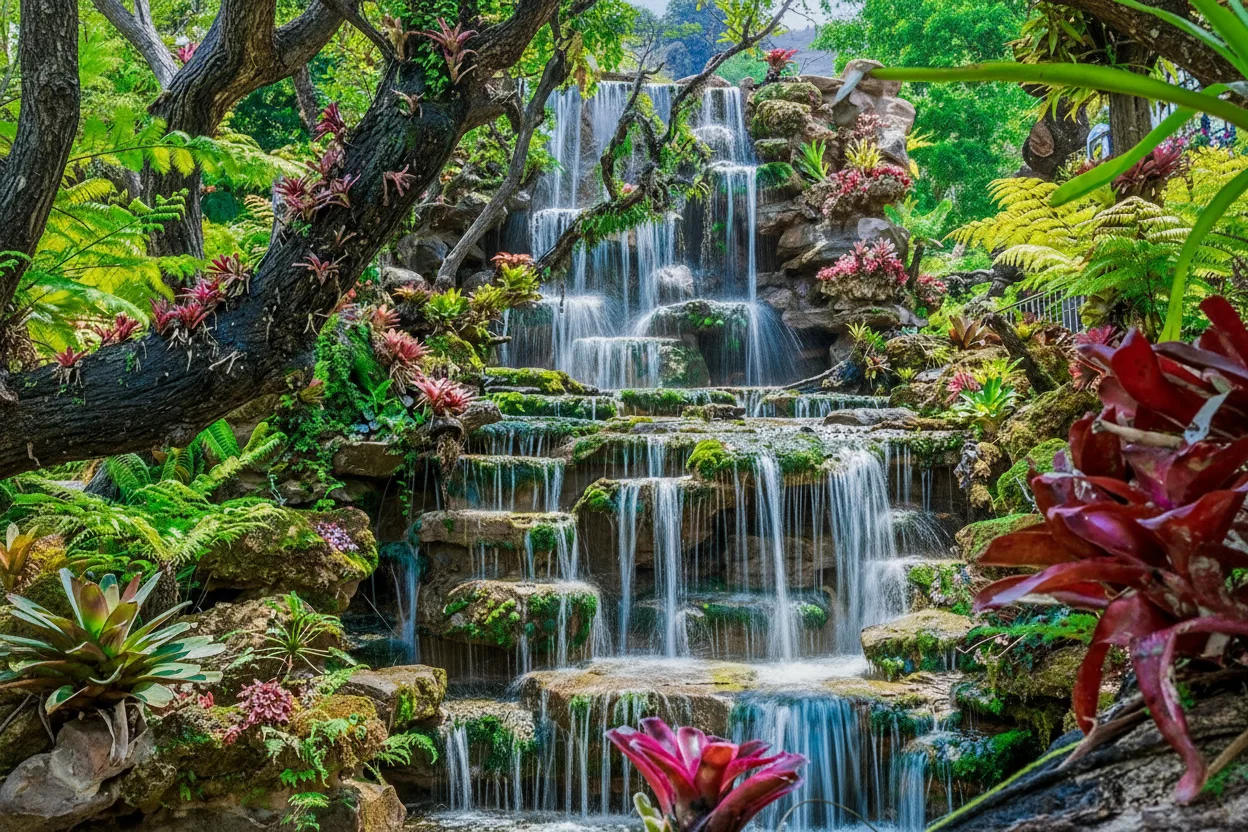Built into the hillside, the gardens offer layered pathways, stone staircases, and landscaped greenery overlooking