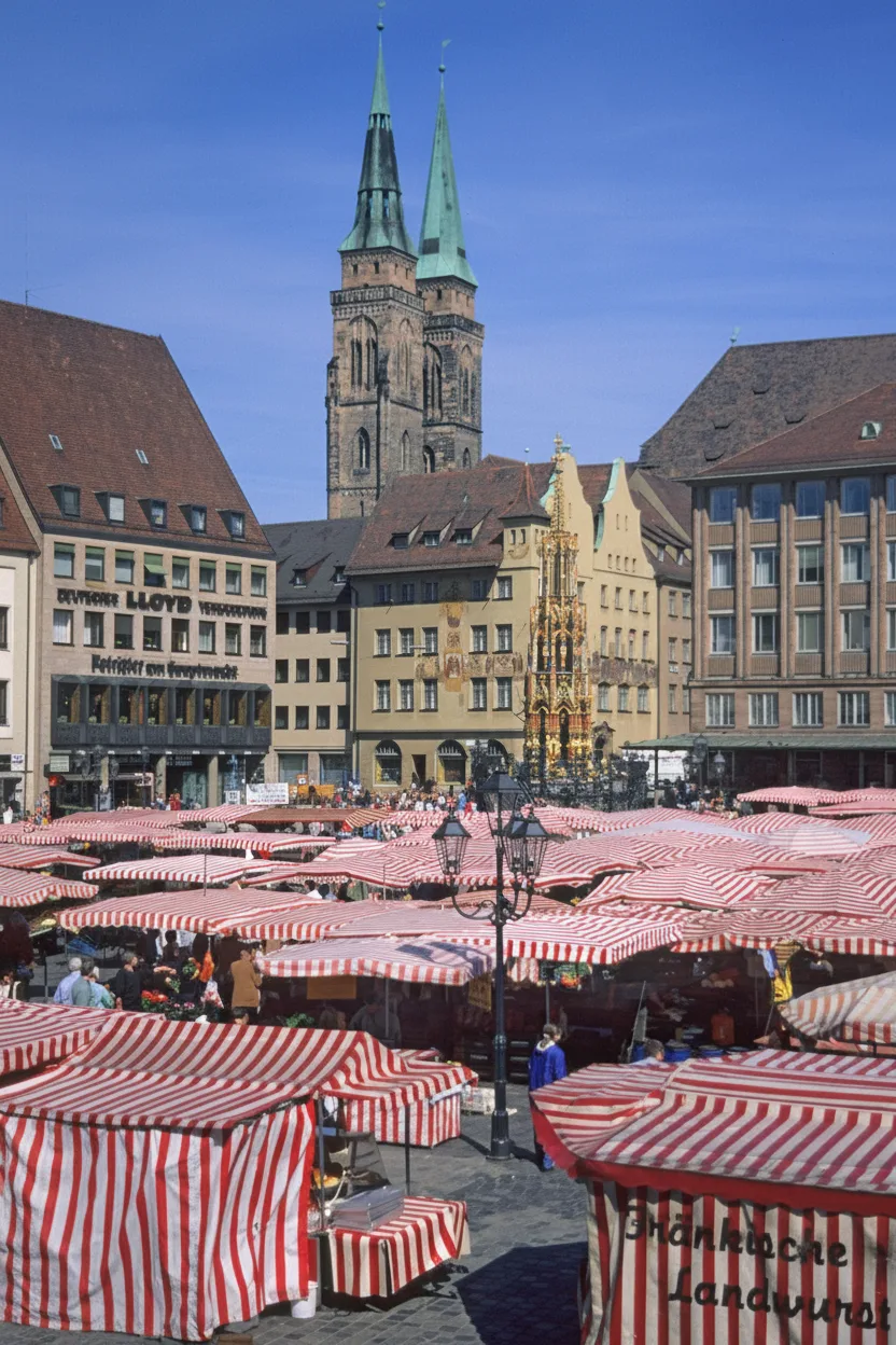 Hauptmarkt is Nuremberg’s central market square, famous for its daily stalls,