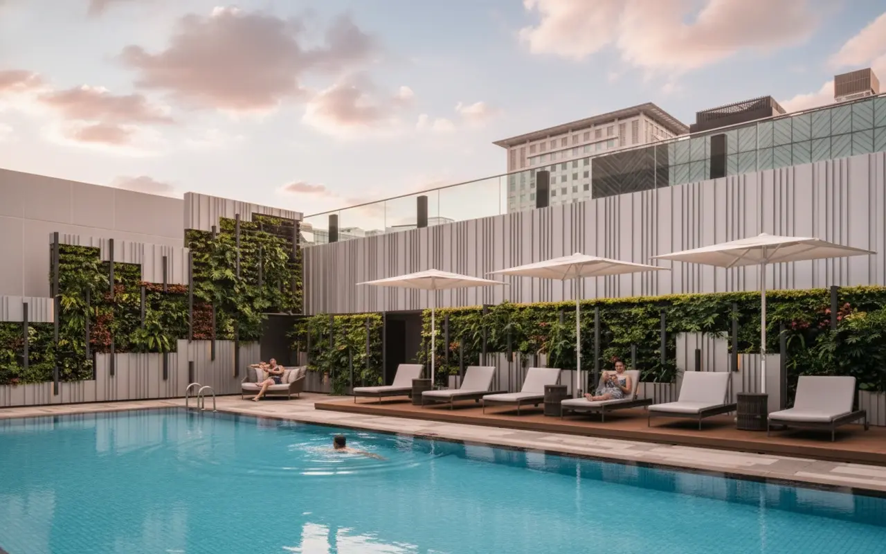 - Pool & Wellness 🏊♀️ unwind 🧘 at the rooftop pool 💧 or the well-equipped fitness center 💪😌