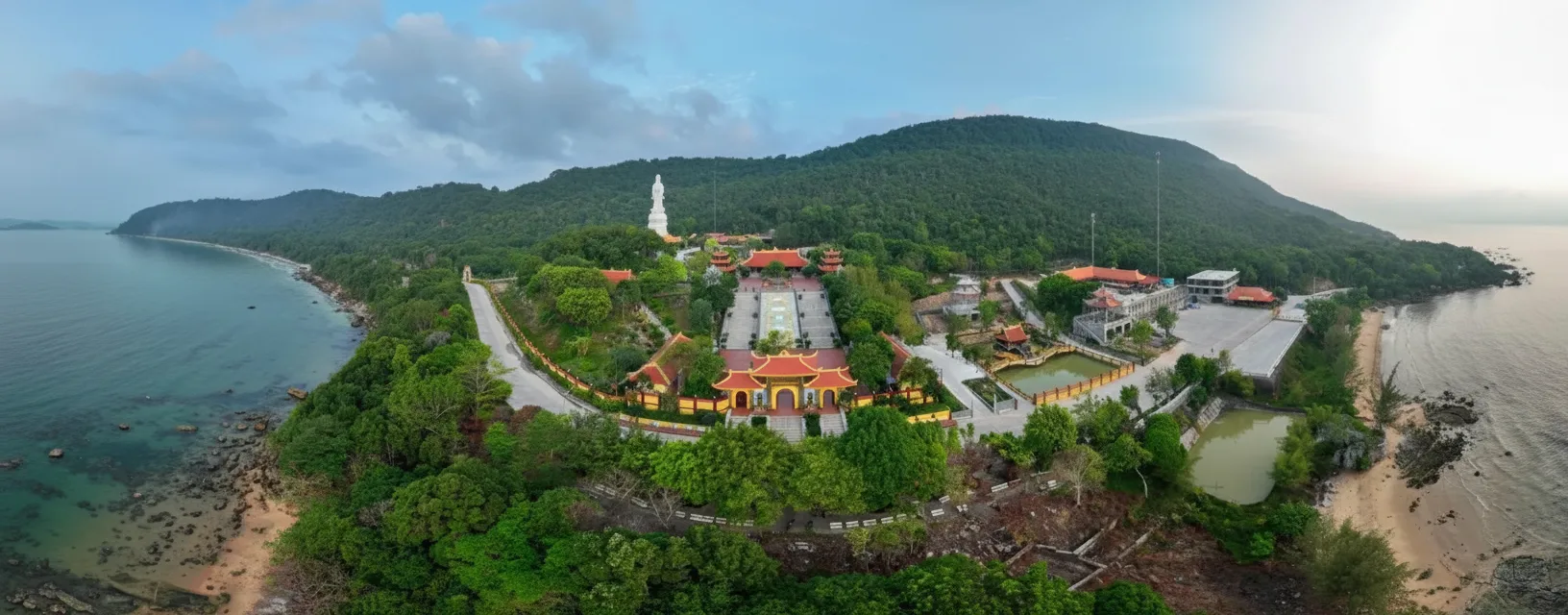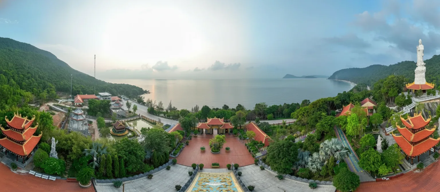 For travelers, Ho Quoc Pagoda provides a serene escape where sea breeze,