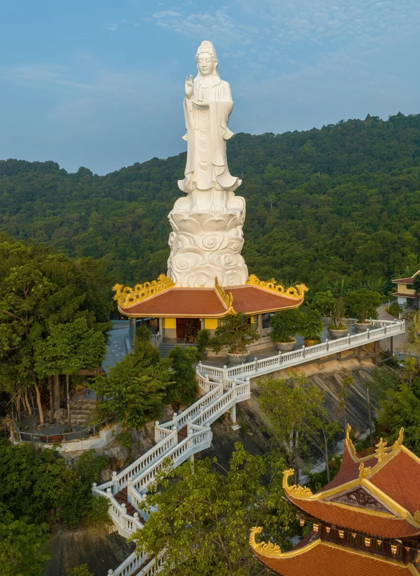 - 🚗 Travel from Duong Dong Town where island roads 🛣️ reach the pagoda within thirty to thirty-five minutes 🌄