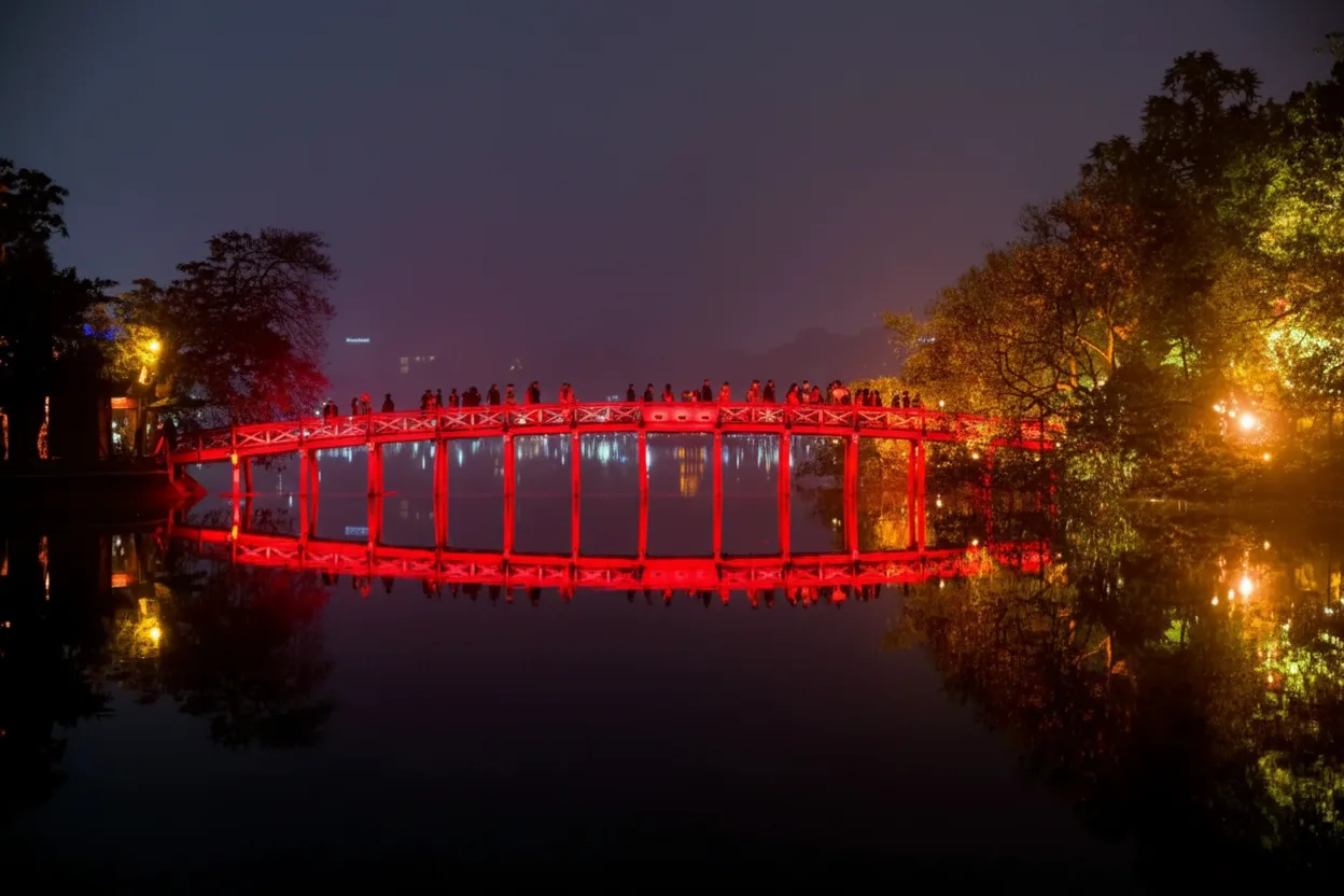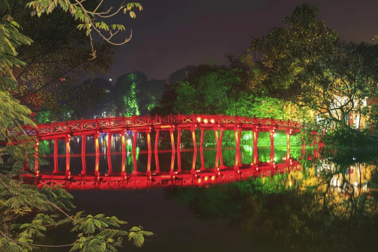 Hoàn Kiếm Lake is the most iconic landmark in Hanoi, Vietnam, located at the very heart of the city.