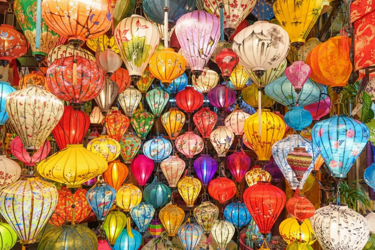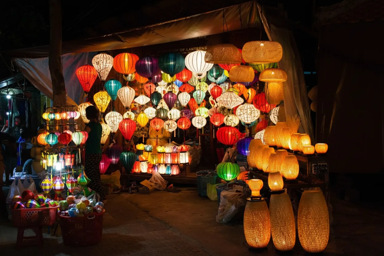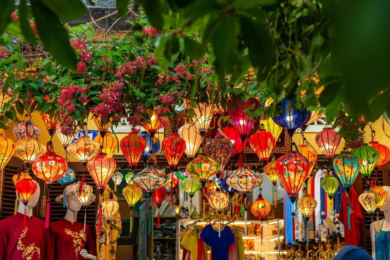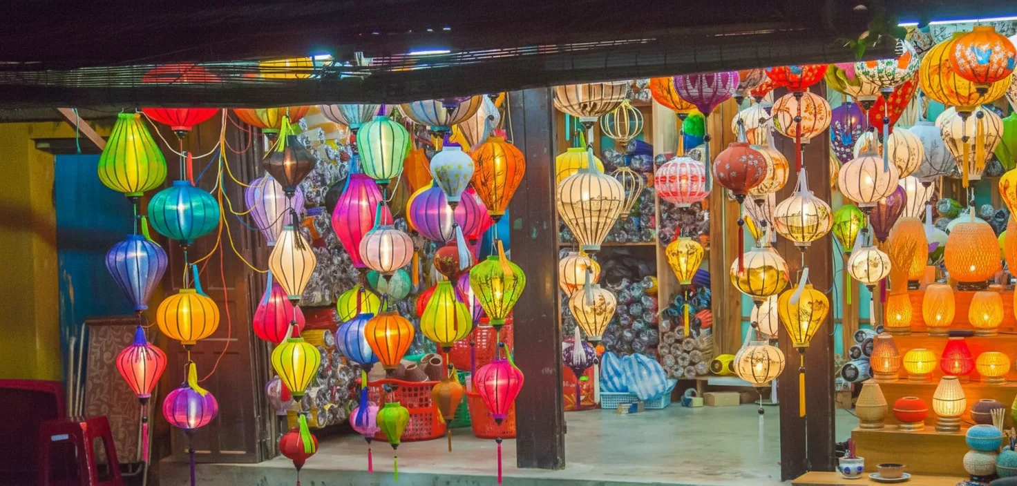 Vietnam. The market is famous for its lantern-filled streets, handmade crafts,