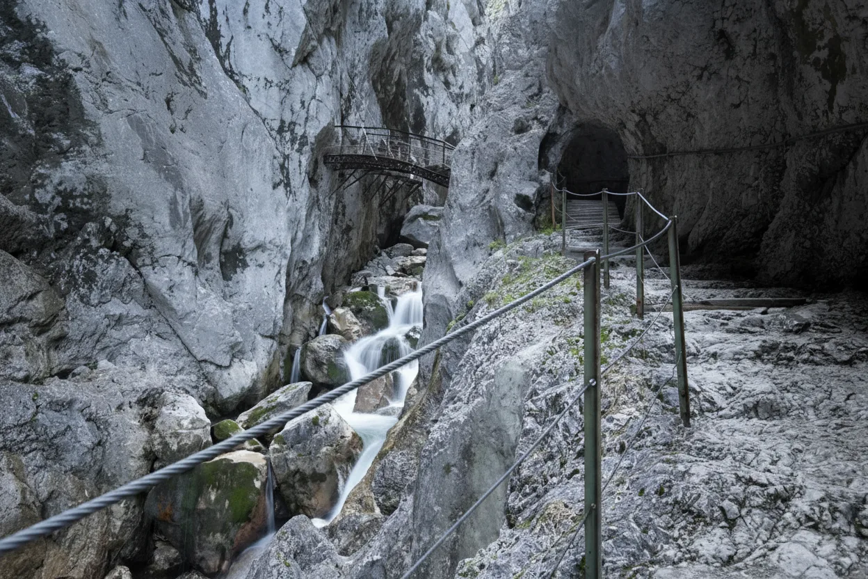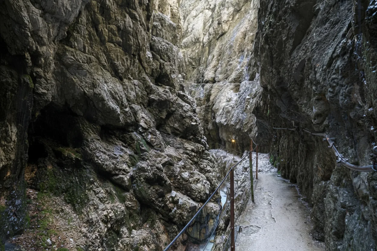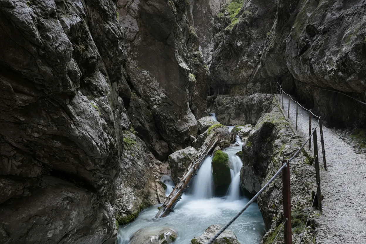 Höllentalklamm is one of the most dramatic and adventurous gorges in Germany, located near Grainau and close to Garmisch-Partenkirchen. Known for its roaring waterfalls, narrow tunnels, carved rock paths, and intense alpine scenery, it offers an unforgettable hiking experience. This is a must-visit destination for adventure hikers, nature lovers, and photographers seeking powerful natural landscapes.
