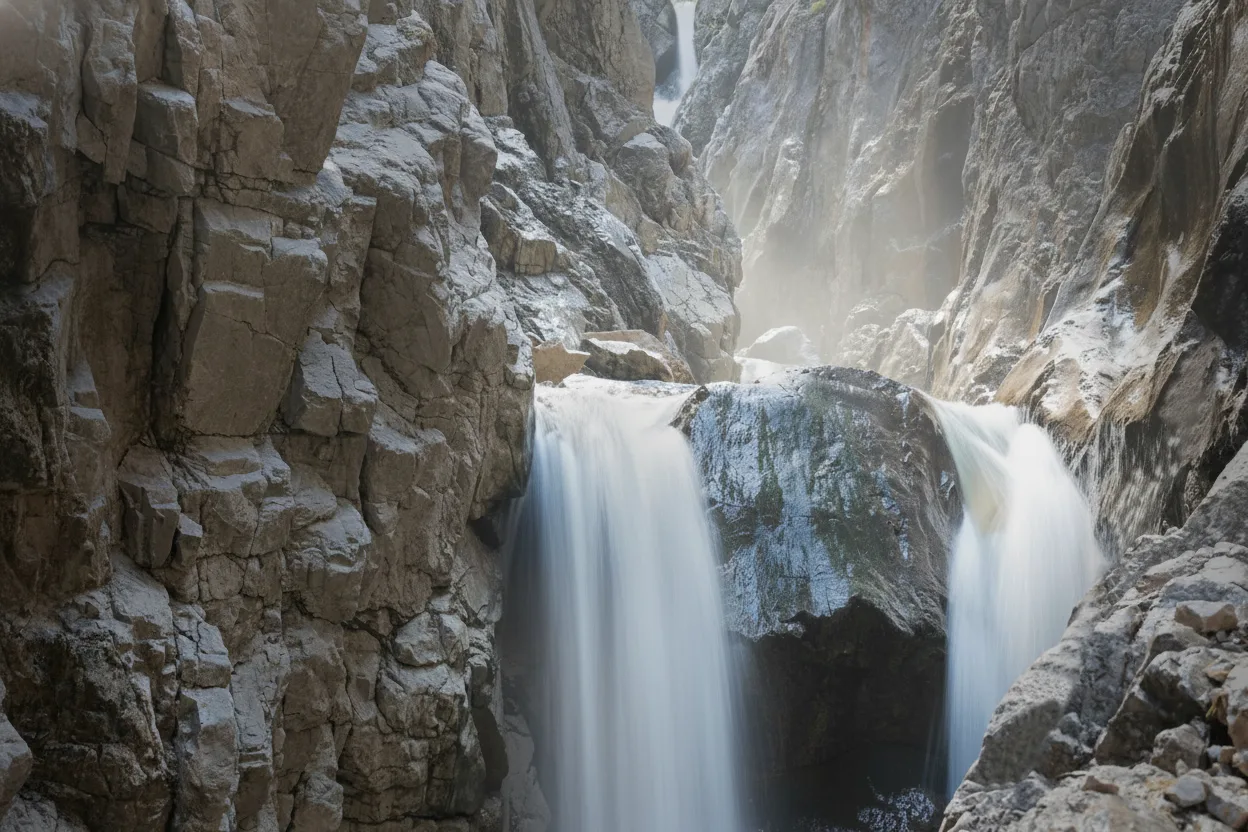• 🌊 Witness the stunning cascades of water as they tumble down the steep and jagged canyon 🏔️ walls. 💧