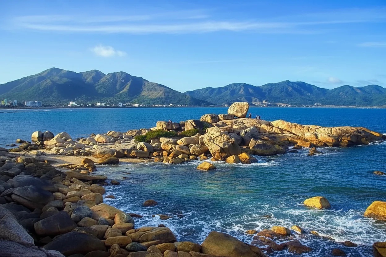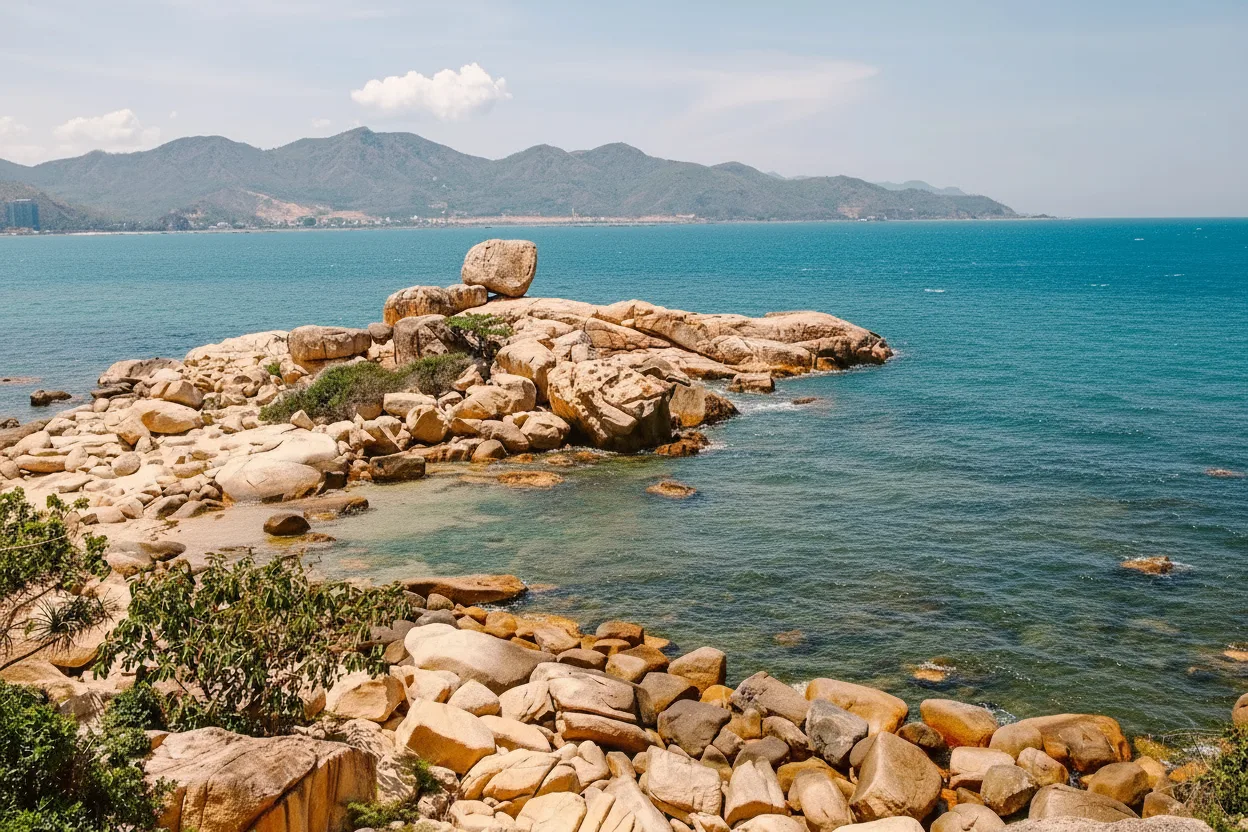 coastline of Nha Trang. It is well known for its large granite rocks, open sea