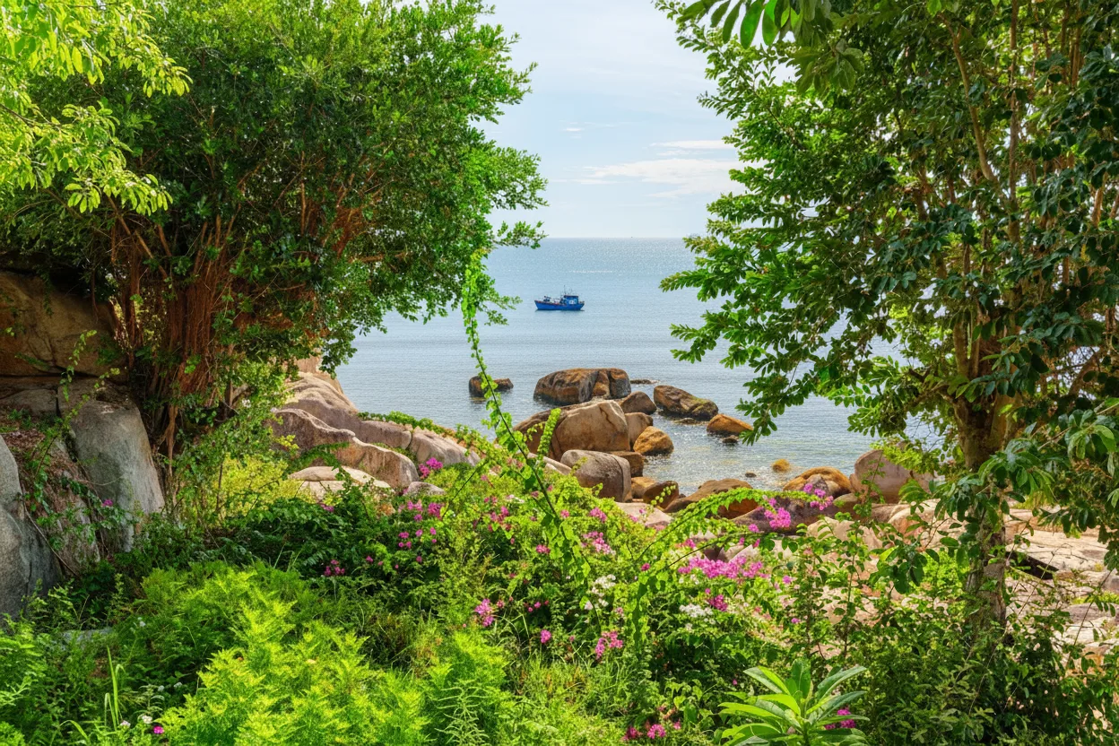 Walking through Hon Chong allows travelers to enjoy quiet ocean scenery,