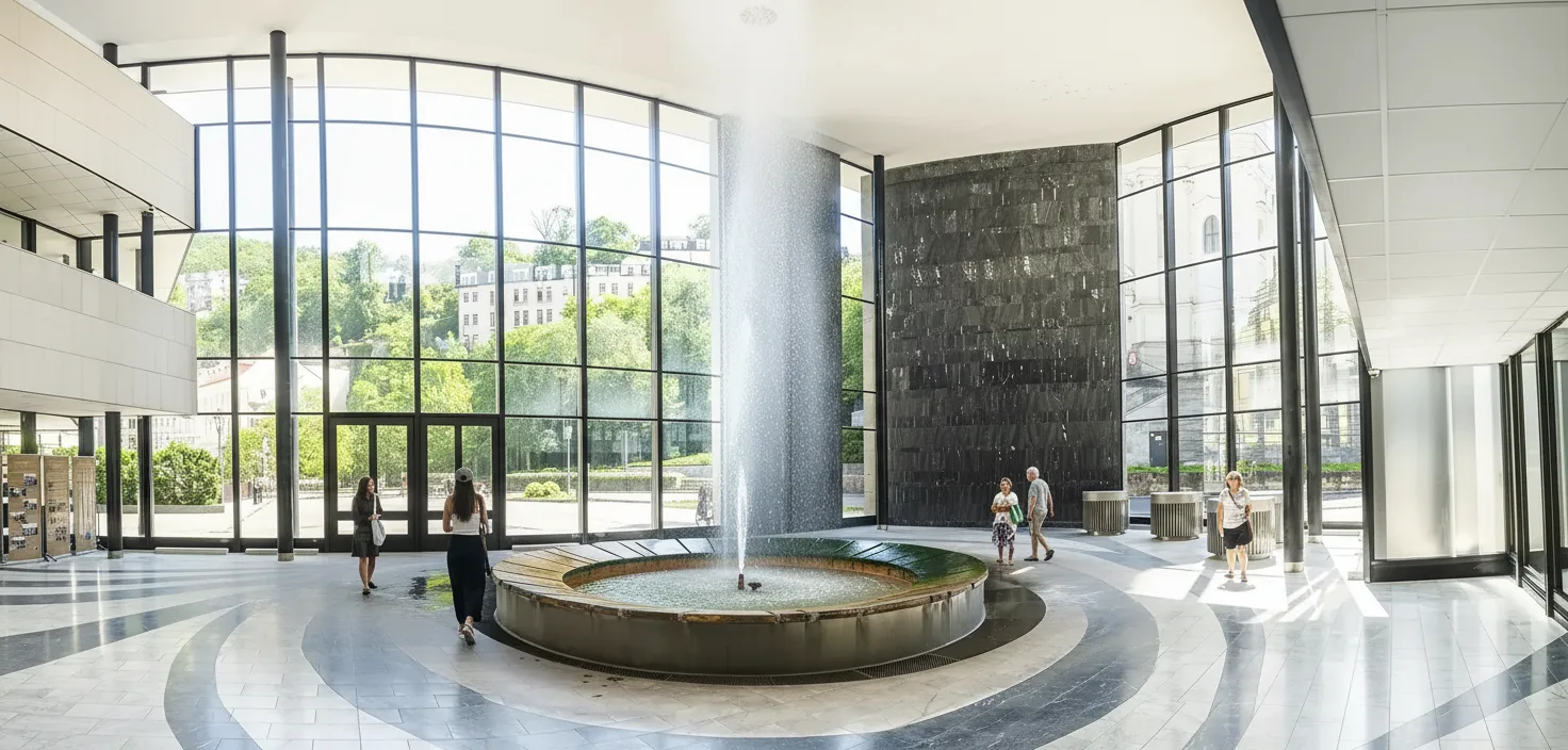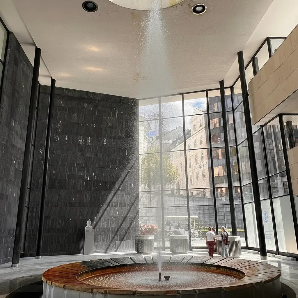 The Hot Spring Colonnade is home to the most powerful and famous thermal spring in Karlovy Vary. This modern colonnade shelters the Vridlo geyser, which shoots hot mineral water high into the air and represents the core of the town’s spa identity. The site allows visitors to observe the natural force of the thermal spring while learning about the geothermal activity beneath Karlovy Vary. It is an essential stop for travelers interested in the science and history behind the town’s spa culture.