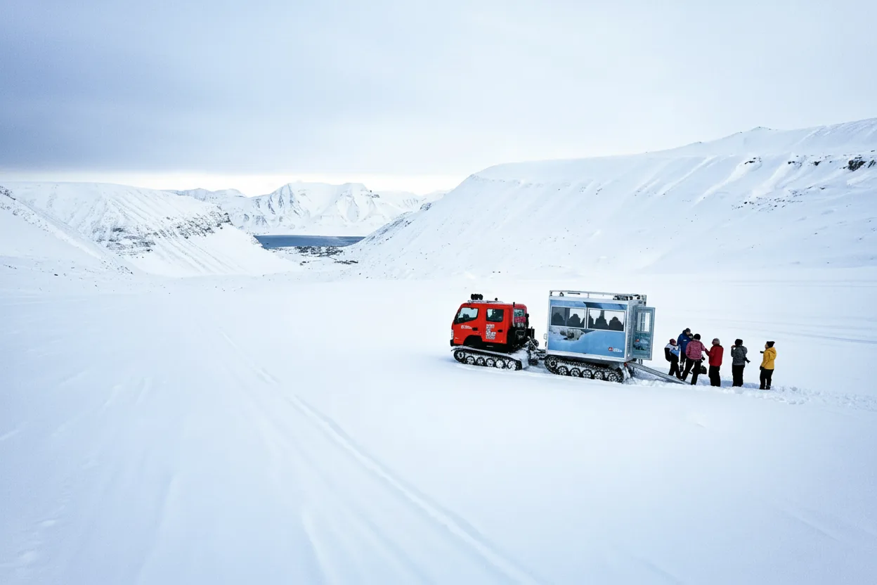 • 🚐 08:30 AM – Depart from Longyearbyen 🏘️ with your professional guide 🎒