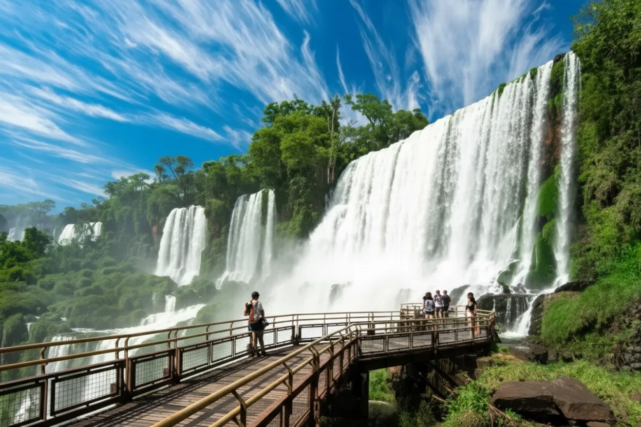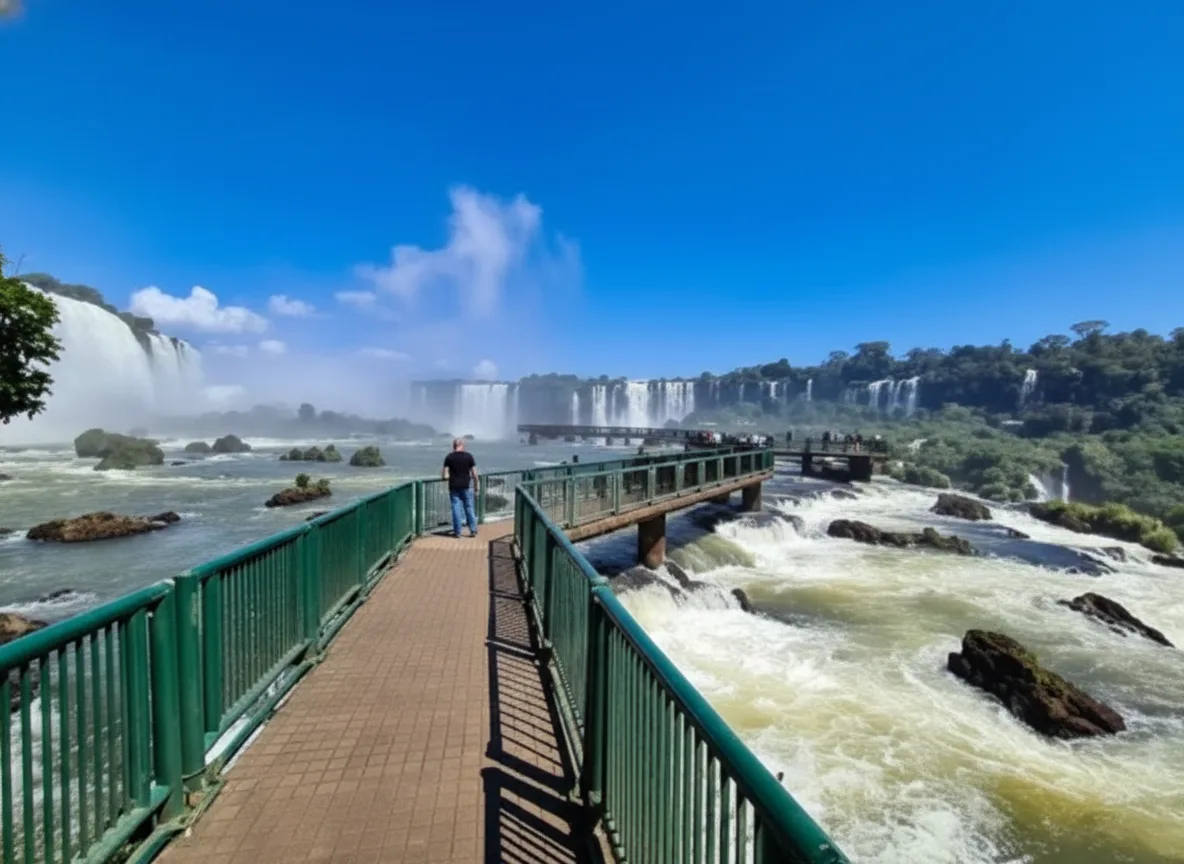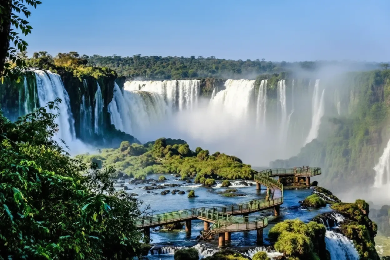viewpoints highlight the natural flow of the Iguazú River as it moves toward the famous