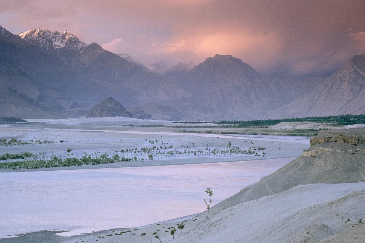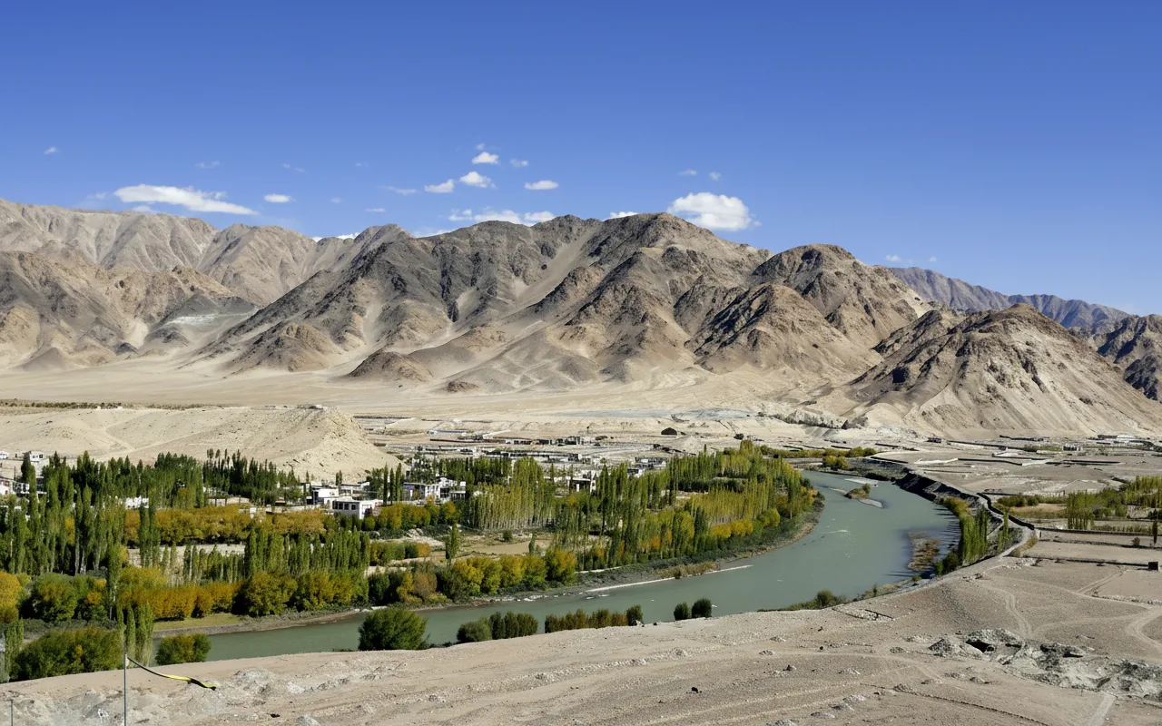 through Ladakh before continuing into Pakistan. In Ladakh, the river shapes valleys,