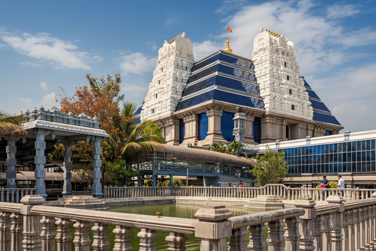 ISKCON Temple Bengaluru is one of the largest and most prominent spiritual centers in the city. Dedicated to Lord Krishna, the temple combines traditional religious practices with modern architecture, creating a peaceful atmosphere for worship, reflection, and cultural learning. Located on Hare Krishna Hill, the temple complex offers panoramic views of the surrounding city. Visitors are welcomed into a calm environment where devotional music, rituals, and spiritual teachings form an integral part of the daily experience. For travelers, ISKCON Temple provides insight into Indian spirituality while offering a serene escape from the busy urban environment.