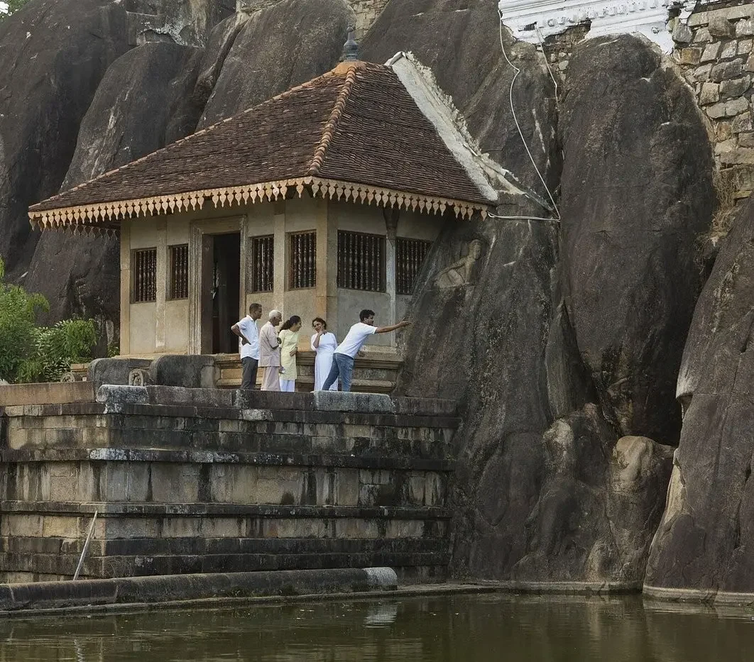 Surrounded by a tranquil pond, flowering trees, and rocky cliffs, Isurumuniya offers a perfect mix