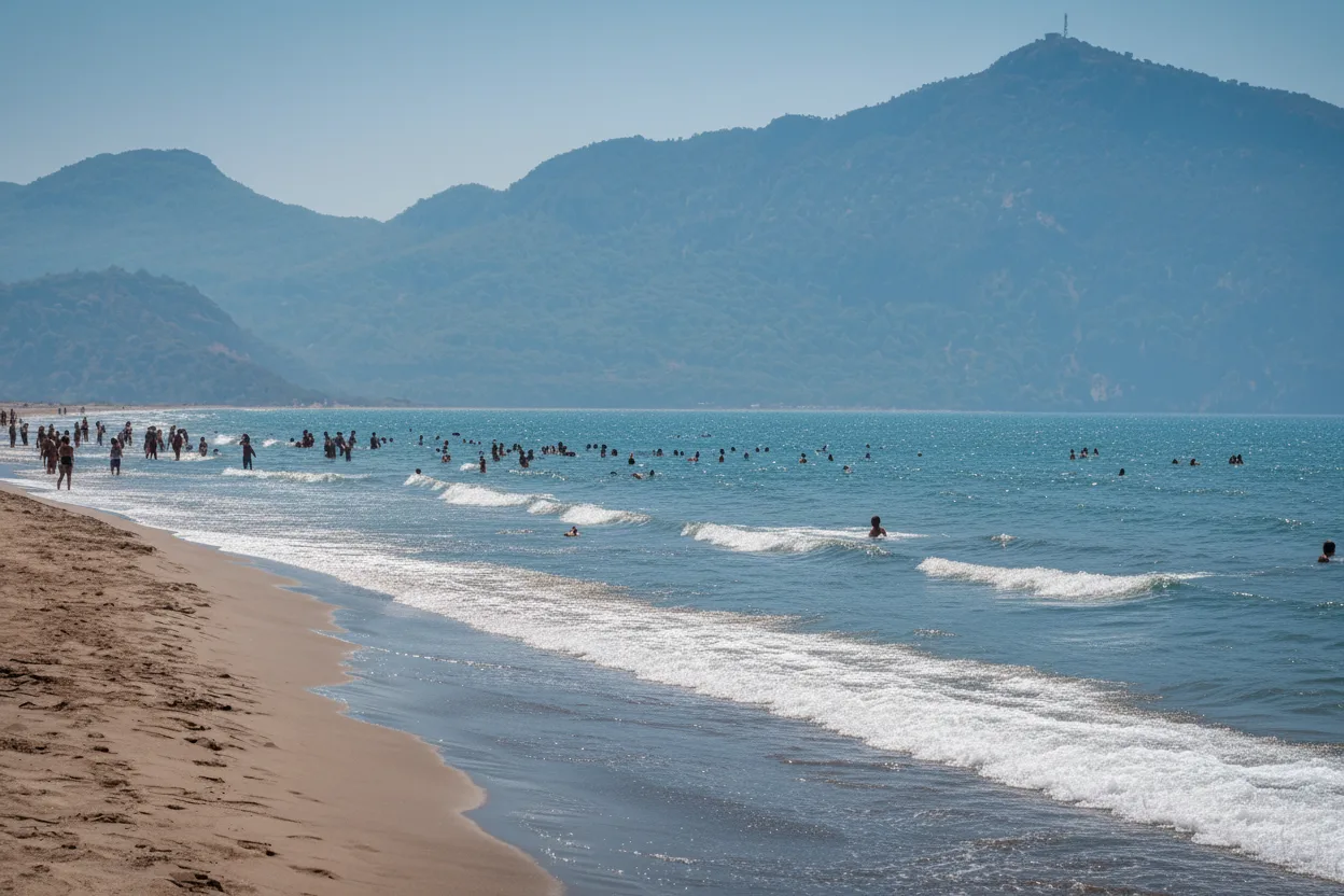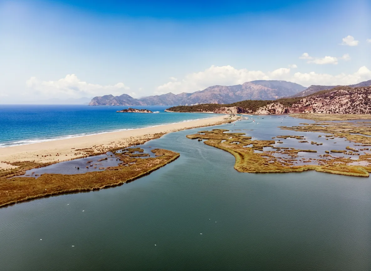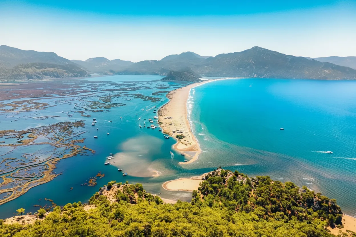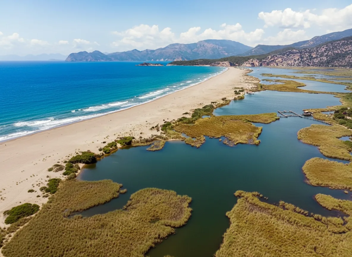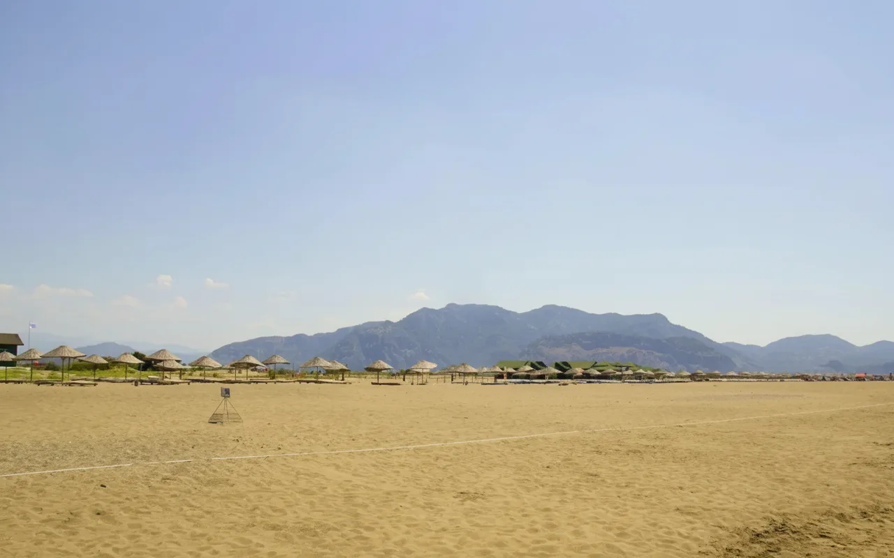 Iztuzu Beach, also known as Turtle Beach, is a long and protected sandy beach near Dalyan in the Muğla region. The beach is famous for its shallow waters, clean sand, and as a nesting area for loggerhead sea turtles. It offers a calm and natural beach experience away from crowded resorts.