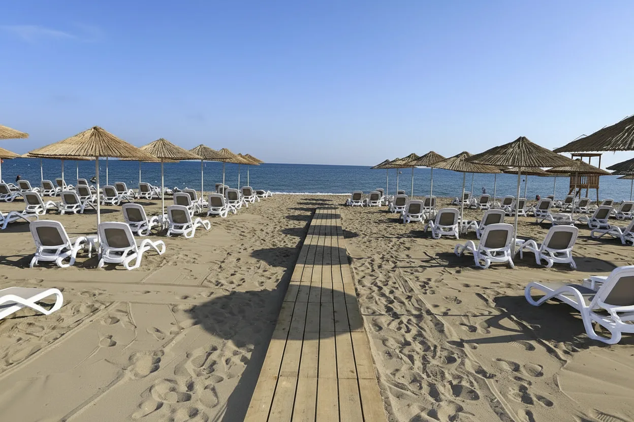 Kadriye Beach is a clean and spacious beach located close to the Belek resort area in Antalya Province. With its wide sandy shoreline and calm sea conditions, it is well suited for families, couples, and travelers looking for a relaxed beach experience away from crowded city beaches.