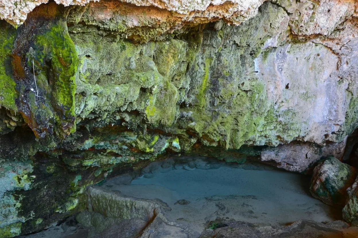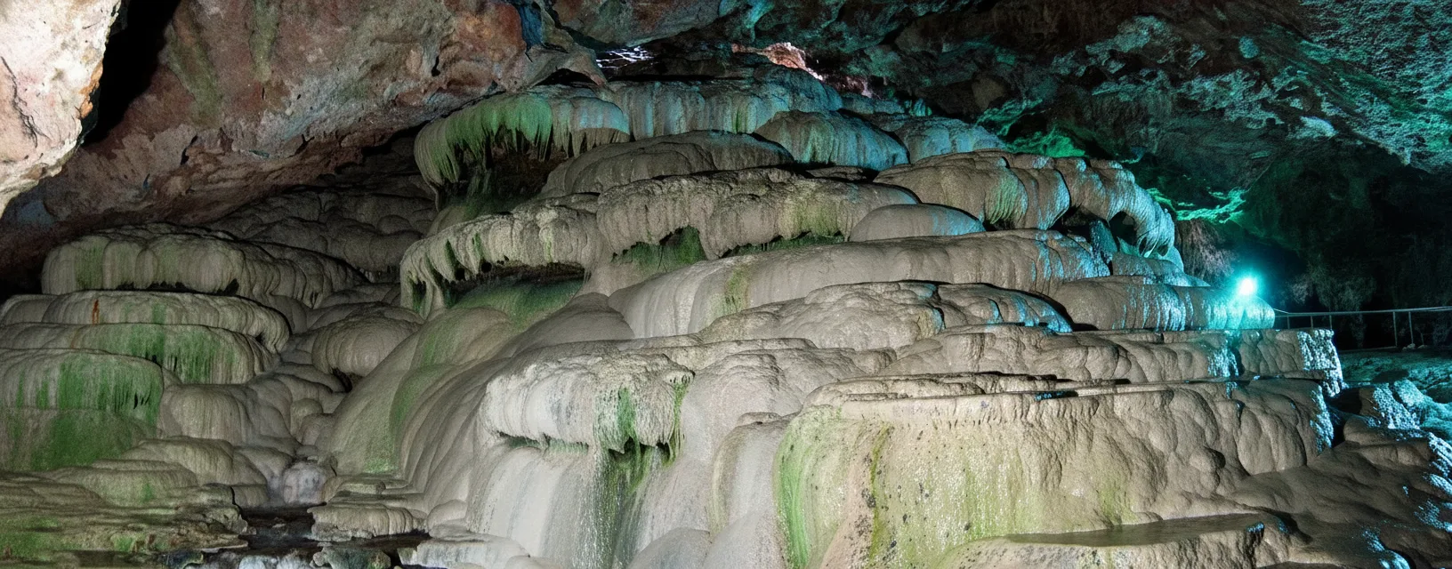 • 🛁 Observe mineral-rich thermal water ♨️ pools flowing through the cavern 🌊