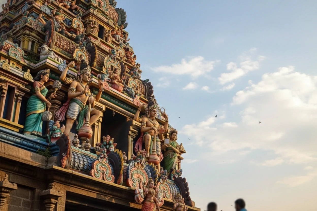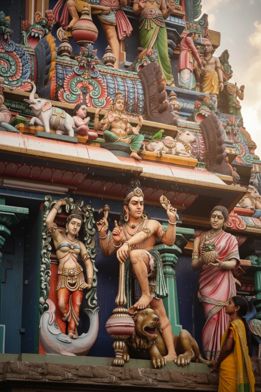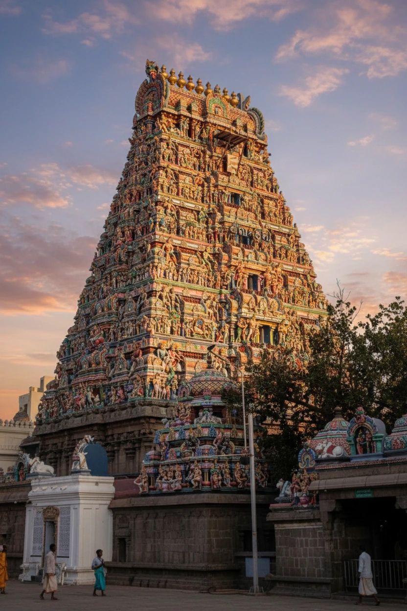 - 🌈 View the colorful Dravidian-style gopuram 🏛️ which stands as a towering architectural masterpiece 🎨