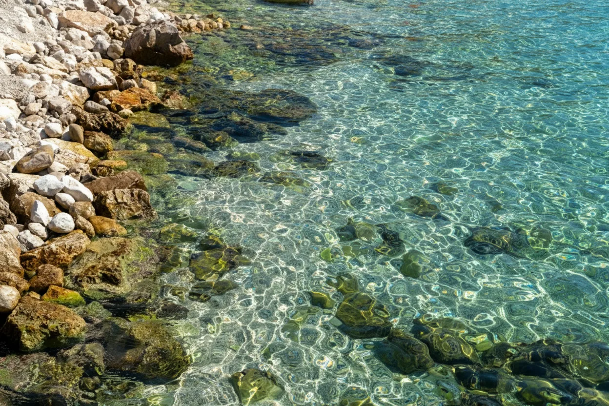 Mediterranean waters ideal for swimming. Surrounded by green hills and
