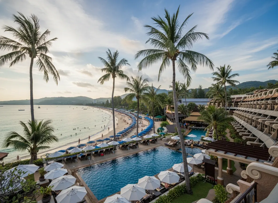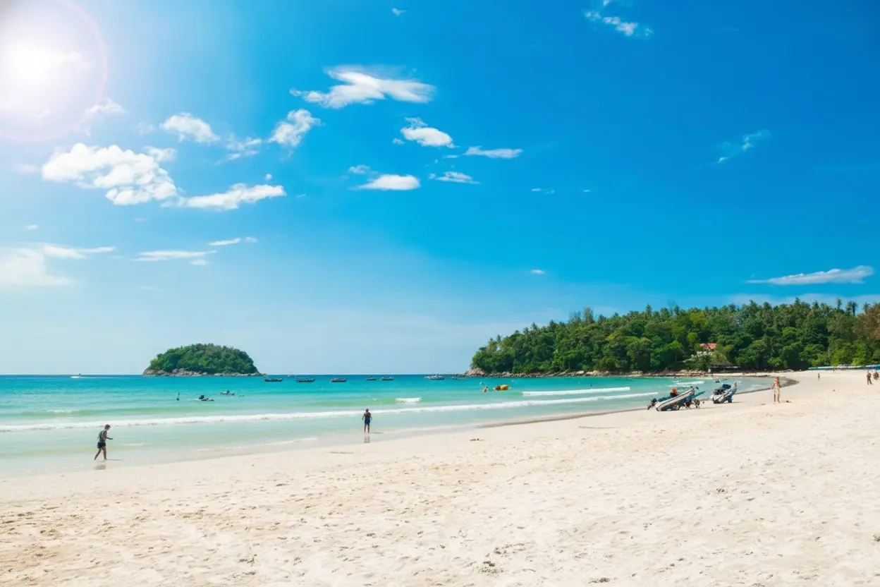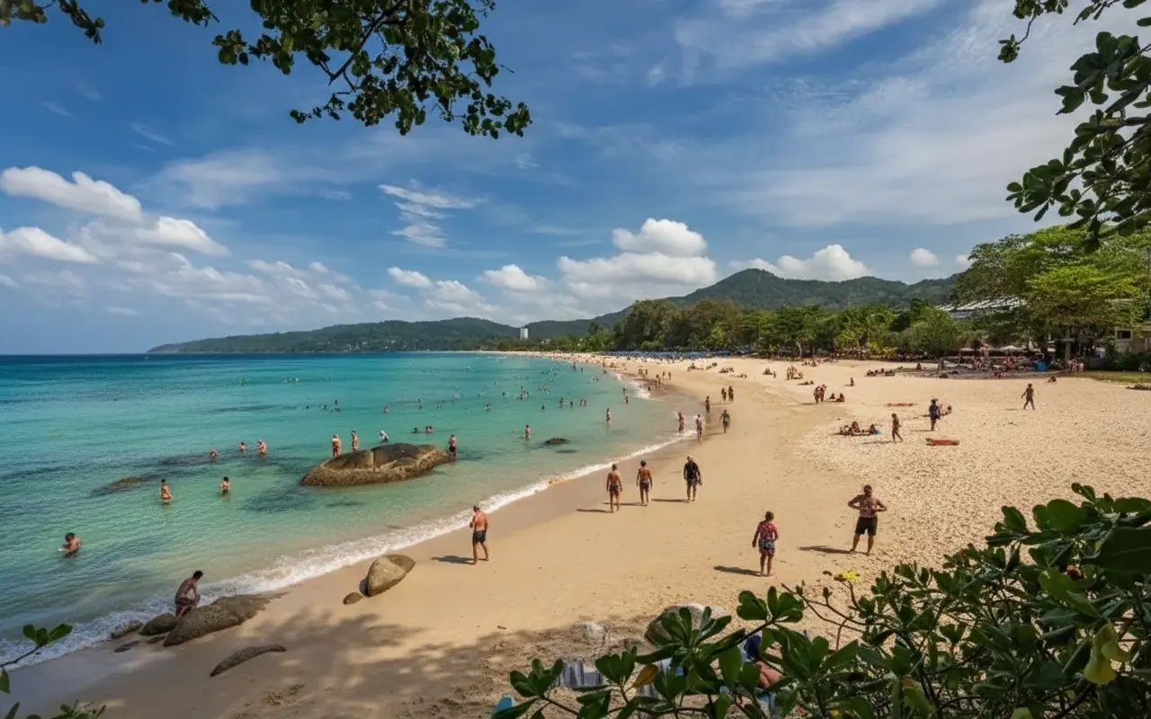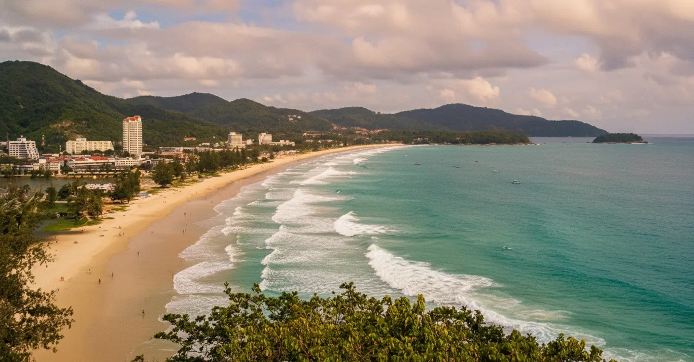 Karon Beach is one of Phuket’s longest and most spacious beaches, stretching over 3 kilometers along the island’s west coast. Known for its golden sand, gentle waves, and relaxed atmosphere, it’s the perfect destination for couples, families, and travelers seeking peace with stunning sunset views.
