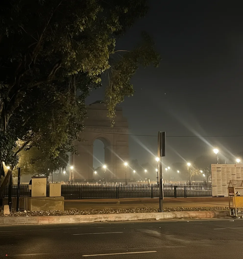 • 🕗 08:00 PM – View India Gate 🏛️ illuminated at night ✨