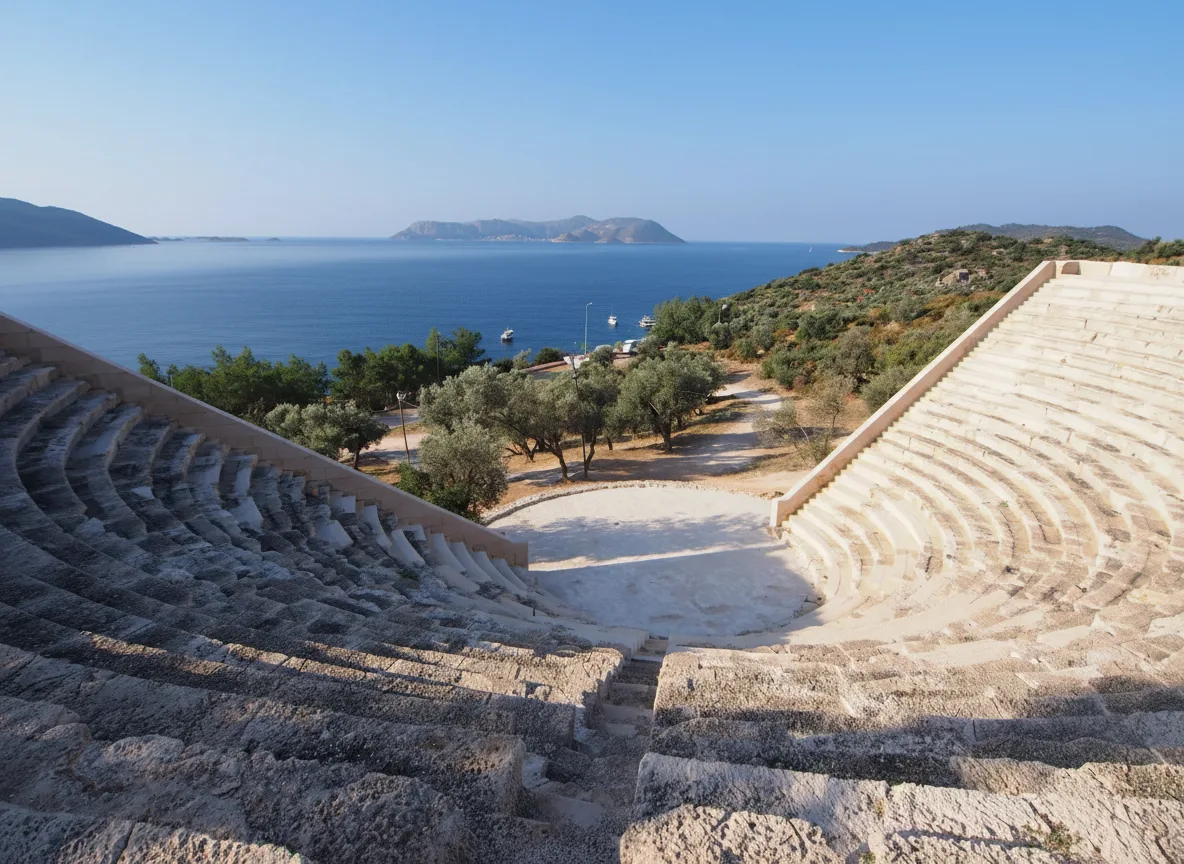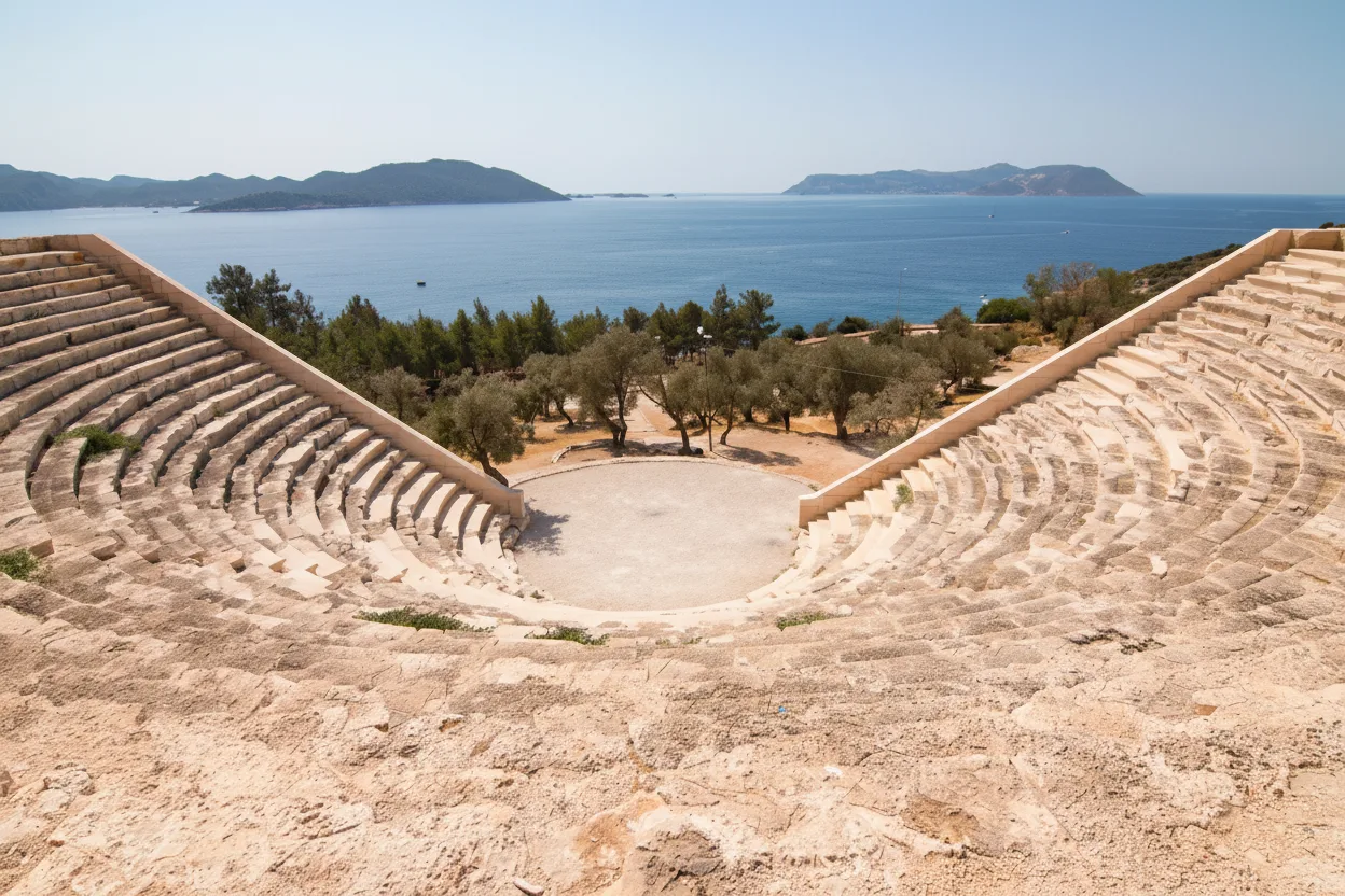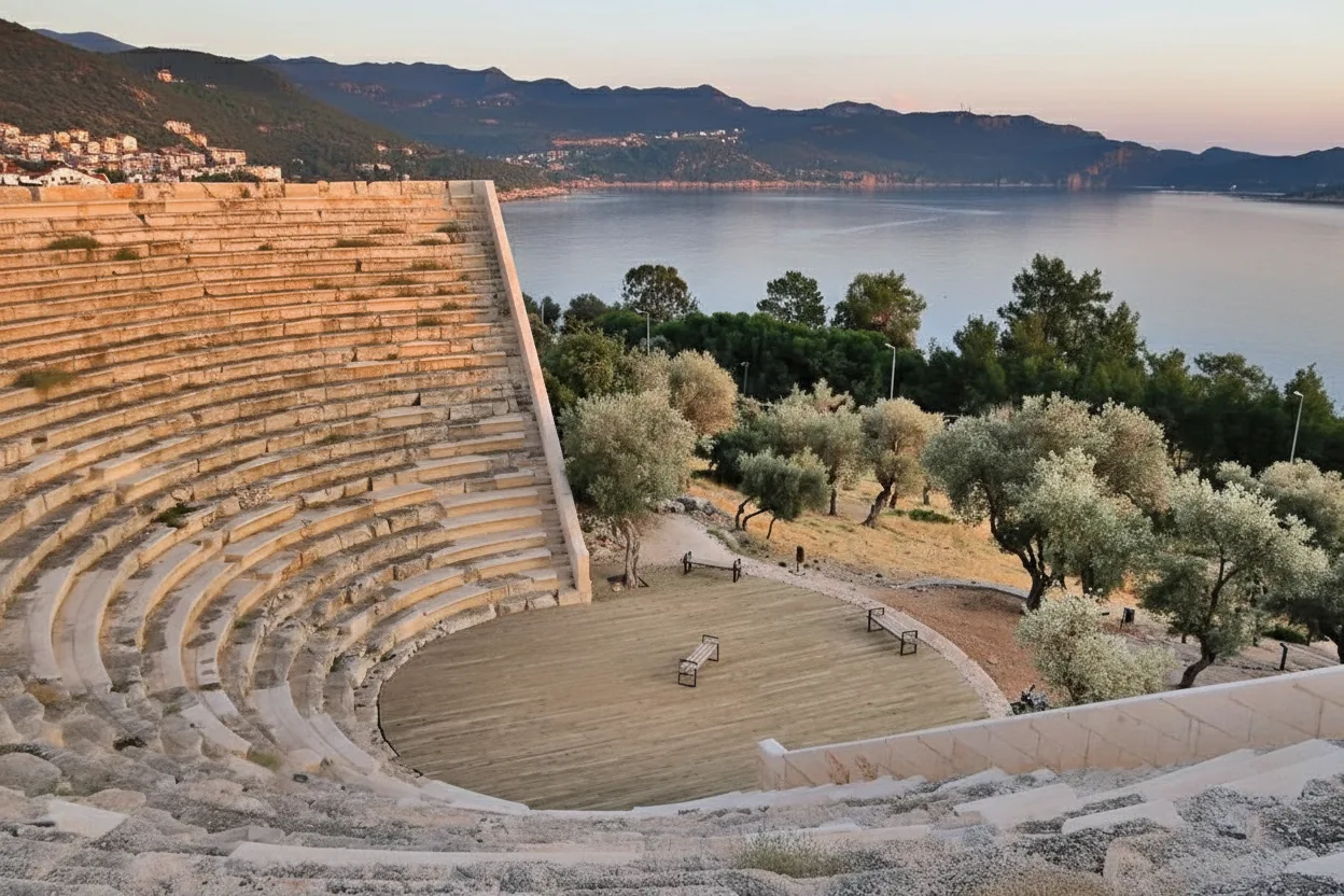 Kas Amphitheatre is a small but impressive ancient theatre located on a hillside overlooking the sea. Dating back to the Hellenistic and Roman periods, it is a peaceful spot to enjoy history, scenery, and beautiful sunset views.