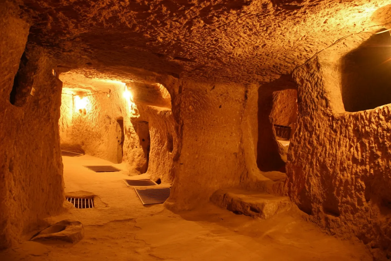 Kaymakli Underground City is one of the largest and most fascinating underground settlements in Cappadocia, Turkey. Built to protect inhabitants from invasions, this multi-level city includes tunnels, storage rooms, ventilation shafts, and living spaces carved deep into the rock.